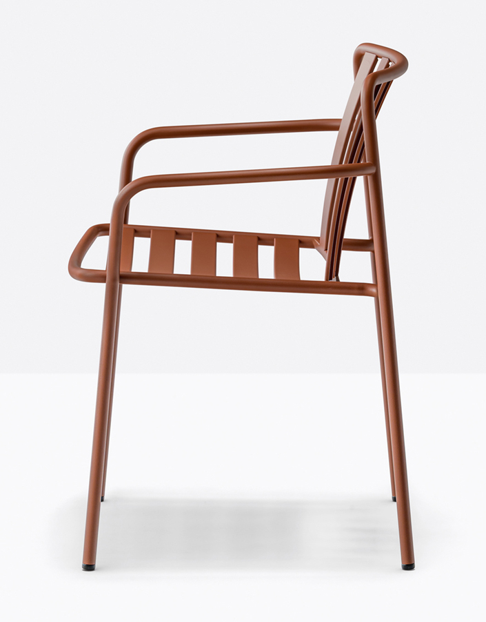 Coney - это коллекция уличной мебели, сочетающая в себе функциональность, комфорт и выразительный визуальный эффект. Кресло из мономатериала с изогнутым и прочным трубчатым каркасом. Сиденье и спинка создают трёхмерную опору, обеспечивая структурную прочность и эргономичность. Равномерно расположенные вертикальные планки спинки, отформованные из листового металла, вместе с горизонтальными планками сиденья создают неповторимый рисунок. Coney идеально подходит как для зон отдыха в городских пространствах или ресторанах, так и для домашних террас.