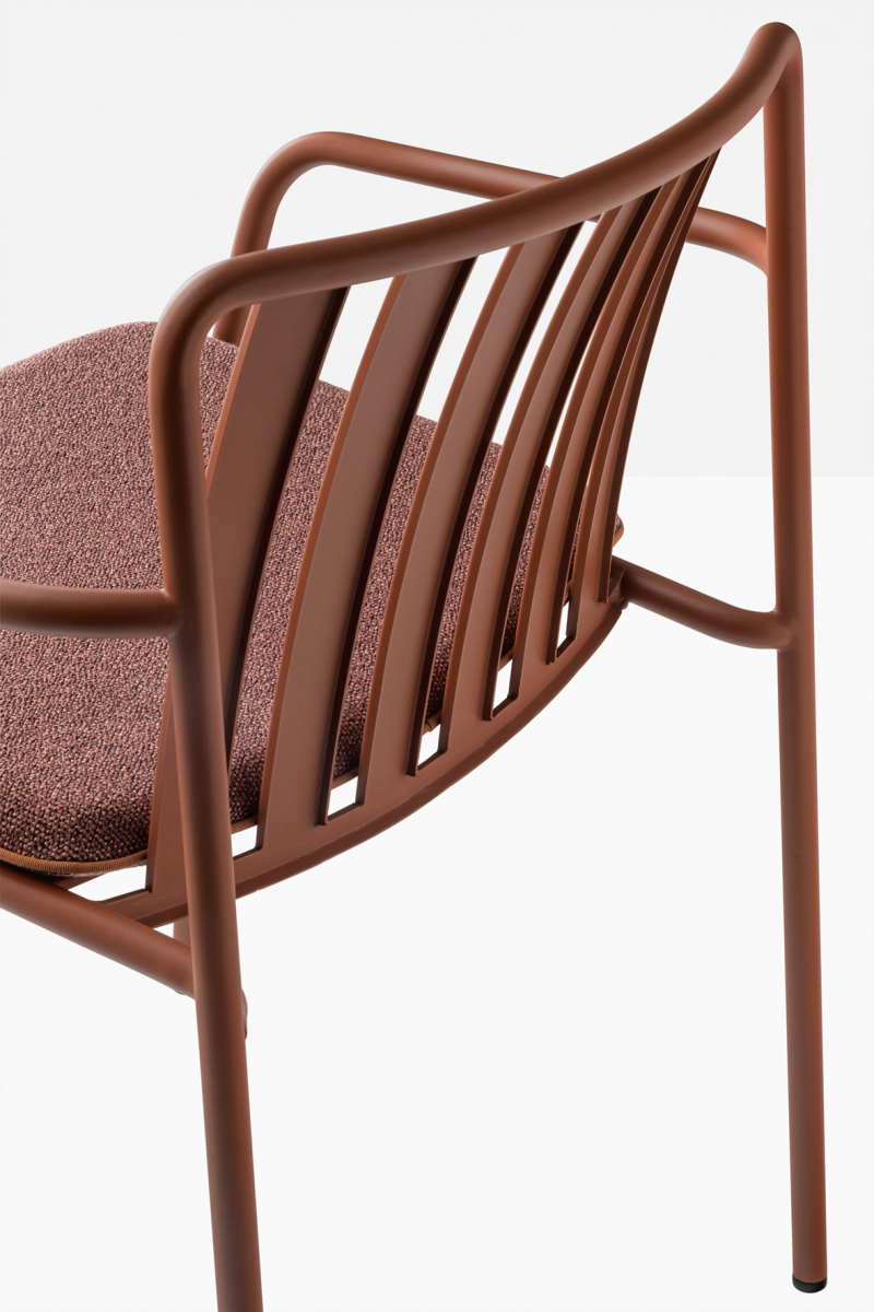 Coney - это коллекция уличной мебели, сочетающая в себе функциональность, комфорт и выразительный визуальный эффект. Кресло из мономатериала с изогнутым и прочным трубчатым каркасом. Сиденье и спинка создают трёхмерную опору, обеспечивая структурную прочность и эргономичность. Равномерно расположенные вертикальные планки спинки, отформованные из листового металла, вместе с горизонтальными планками сиденья создают неповторимый рисунок. Coney идеально подходит как для зон отдыха в городских пространствах или ресторанах, так и для домашних террас.
