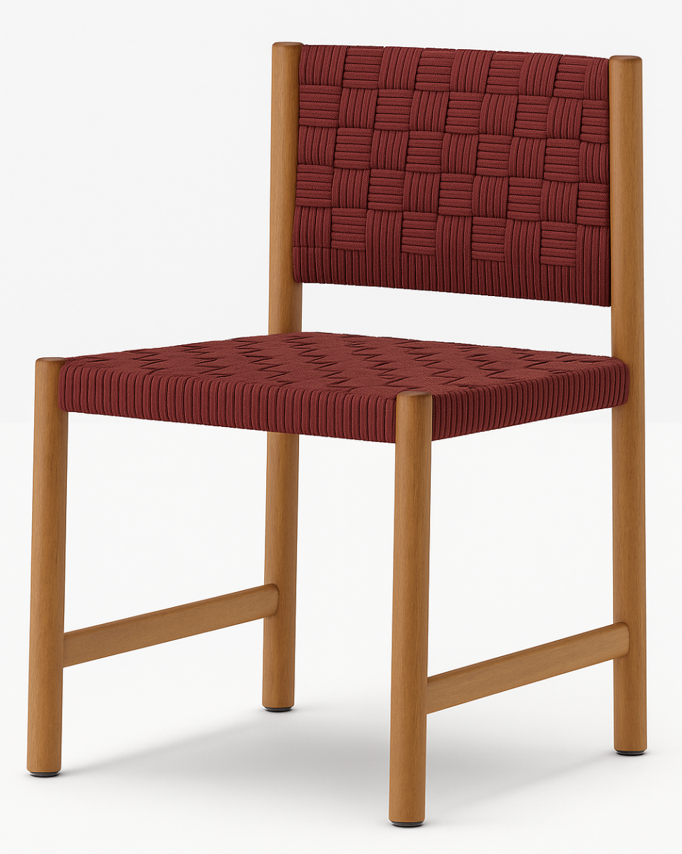 Griante переосмысливает концепцию плетеных сидений с помощью дизайна, сочетающего традиционное мастерство и промышленное производство. Уличный стул с каркасом из тика, изысканной породы дерева, сертифицирован по стандарту FSC® C114358. Цилиндрические ножки поворачиваются, а алюминиевая рама обеспечивает опору для сиденья.