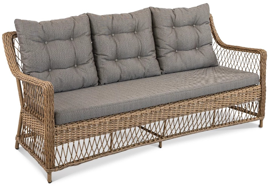 Каждый элемент набора изготовлен из высококачественных материалов, устойчивых к дождю, ультрафиолету и другим капризам погоды, что гарантирует его сохранность и безупречный вид на долгие годы. Мягкие, объемные подушки дивана и кресел дарят непревзойденное ощущение расслабления, приглашая вас насладиться отдыхом в кругу семьи и друзей. Прочный столик является не только стильным акцентом, но и практичным дополнением, всегда находясь под рукой для прохладительных напитков или книг. Комплект Impero - это инвестиция в ваш комфорт и эстетику пространства, где каждая деталь продумана для того, чтобы вы могли наслаждаться жизнью на свежем воздухе без лишних хлопот.