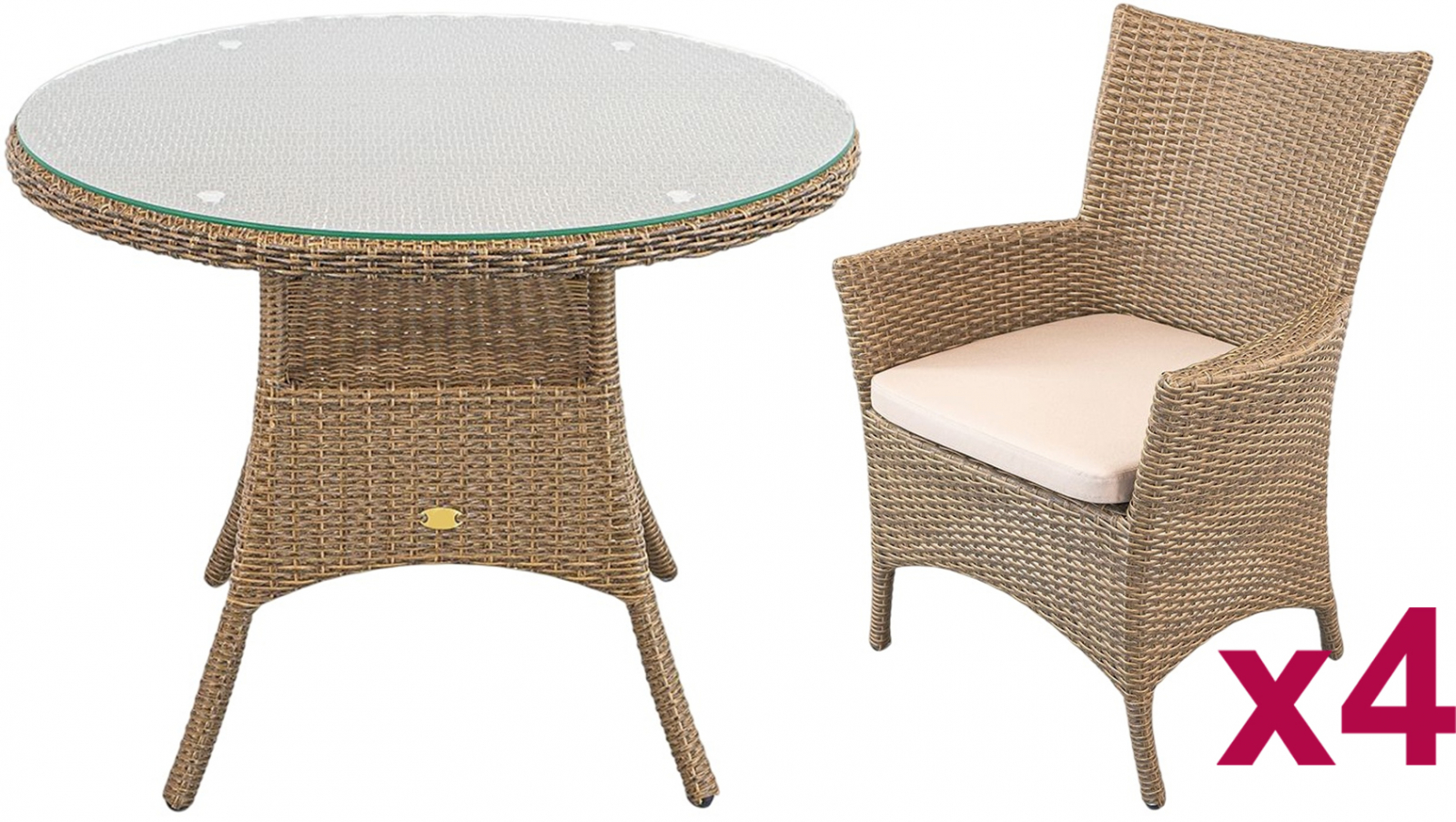 Комфорт и практичность продуманы до мелочей. Круглый стол со столешницей из закаленного стекла создает удобное пространство для четверых человек, оставаясь неприхотливым в уходе. Мягкие кресла с подушками в съемных чехлах из износостойкой ткани обеспечивают максимальное удобство, а возможность быстрой очистки делает комплект идеальным для мест с высокой проходимостью. Набор Kipr - это идеальное решение, которое с равным успехом дополнит частную террасу или патио, а также станет выигрышным выбором для ресторанов, отелей и летних веранд кафе, безупречно служа в течение многих сезонов.