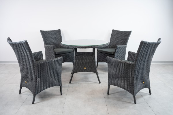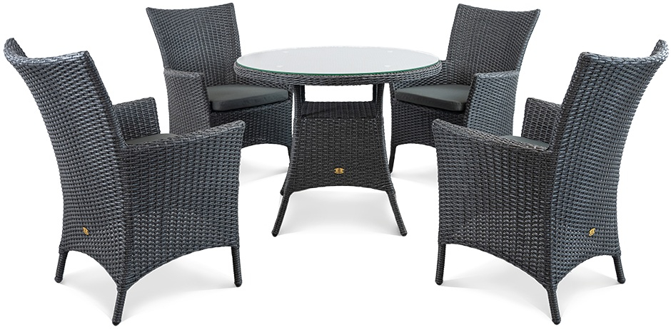 Комфорт и практичность продуманы до мелочей. Круглый стол со столешницей из закаленного стекла создает удобное пространство для четверых человек, оставаясь неприхотливым в уходе. Мягкие кресла с подушками в съемных чехлах из износостойкой ткани обеспечивают максимальное удобство, а возможность быстрой очистки делает комплект идеальным для мест с высокой проходимостью. Набор Kipr - это идеальное решение, которое с равным успехом дополнит частную террасу или патио, а также станет выигрышным выбором для ресторанов, отелей и летних веранд кафе, безупречно служа в течение многих сезонов.