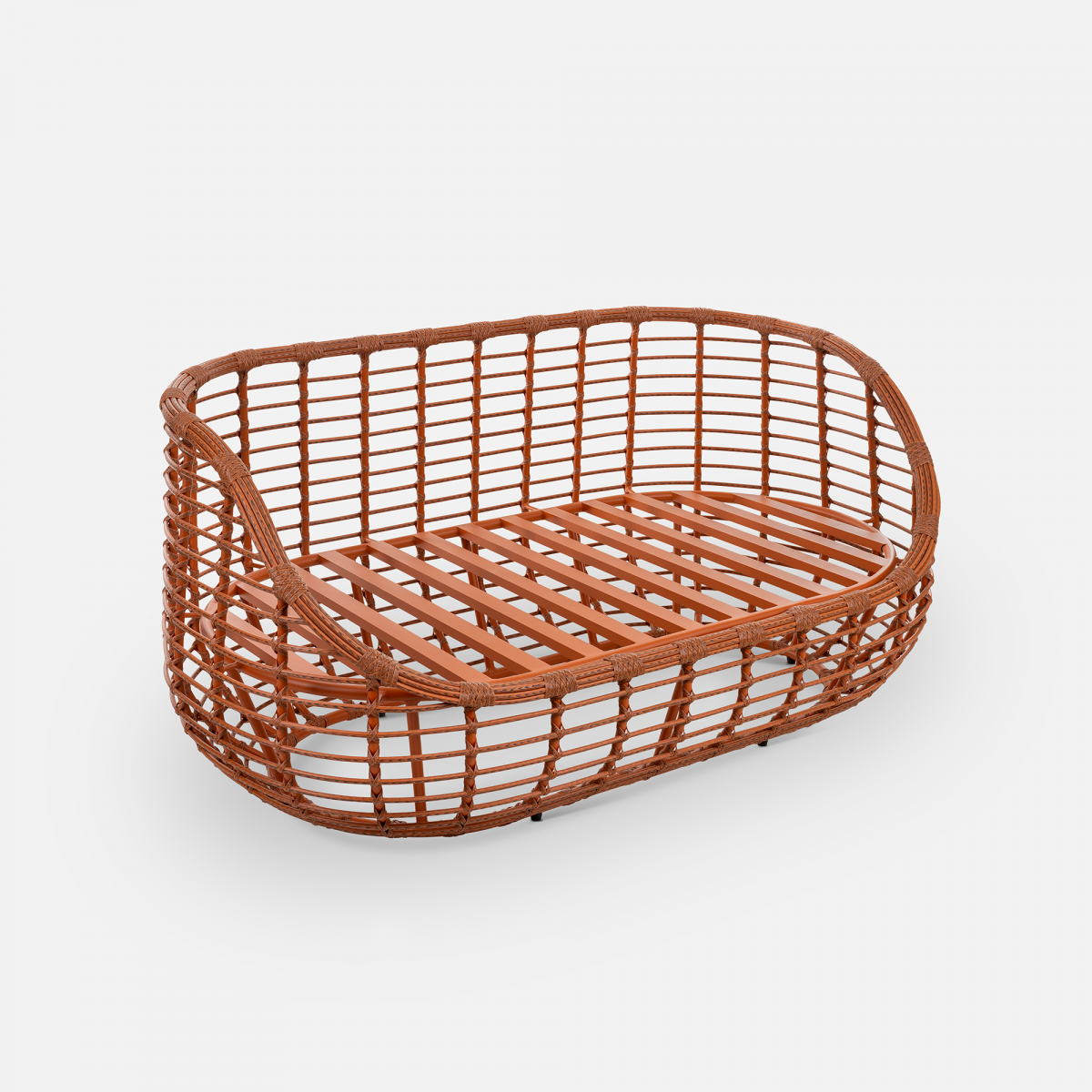 Диван Lotus - это уличная модель с выразительным округлым силуэтом и глубокой посадкой. Цельносварной алюминиевый каркас скрыт за плотным плетением из искусственного ротанга, дополнен съемными подушками из устойчивого к погодным условиям олефина. Конструкция рассчитана на круглогодичную эксплуатацию под навесом.