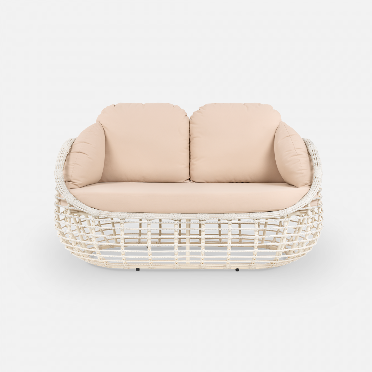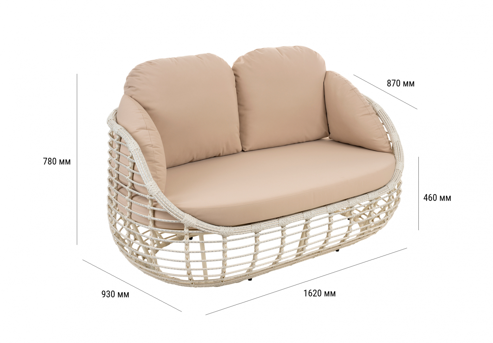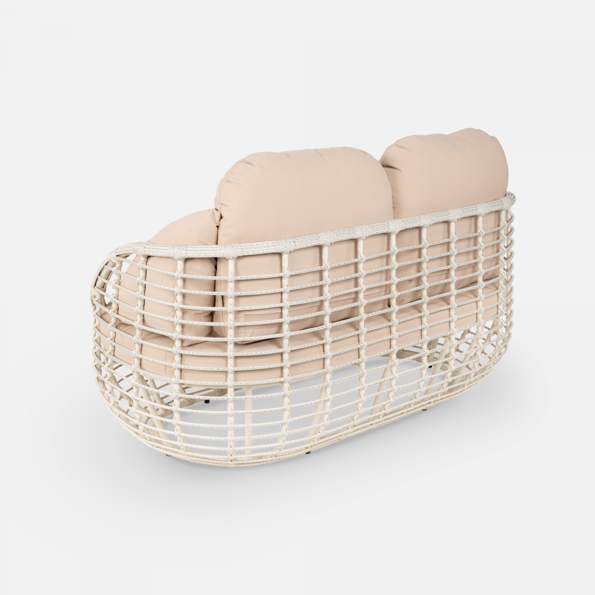 Эргономика дивана обеспечивает комфорт: спинка и подлокотники образуют единую чашу, мягко поддерживающую корпус. Материалы подобраны для долговечности: ротанг не выцветает на солнце, а каркас с порошковой окраской защищен от коррозии. Модель органично вписывается в частные террасы, зоны у бассейна и коммерческие пространства. Преимущества коллекции: глубокая посадка с полной поддержкой спины, устойчивость к влаге и ультрафиолету, простой уход без специальных средств.