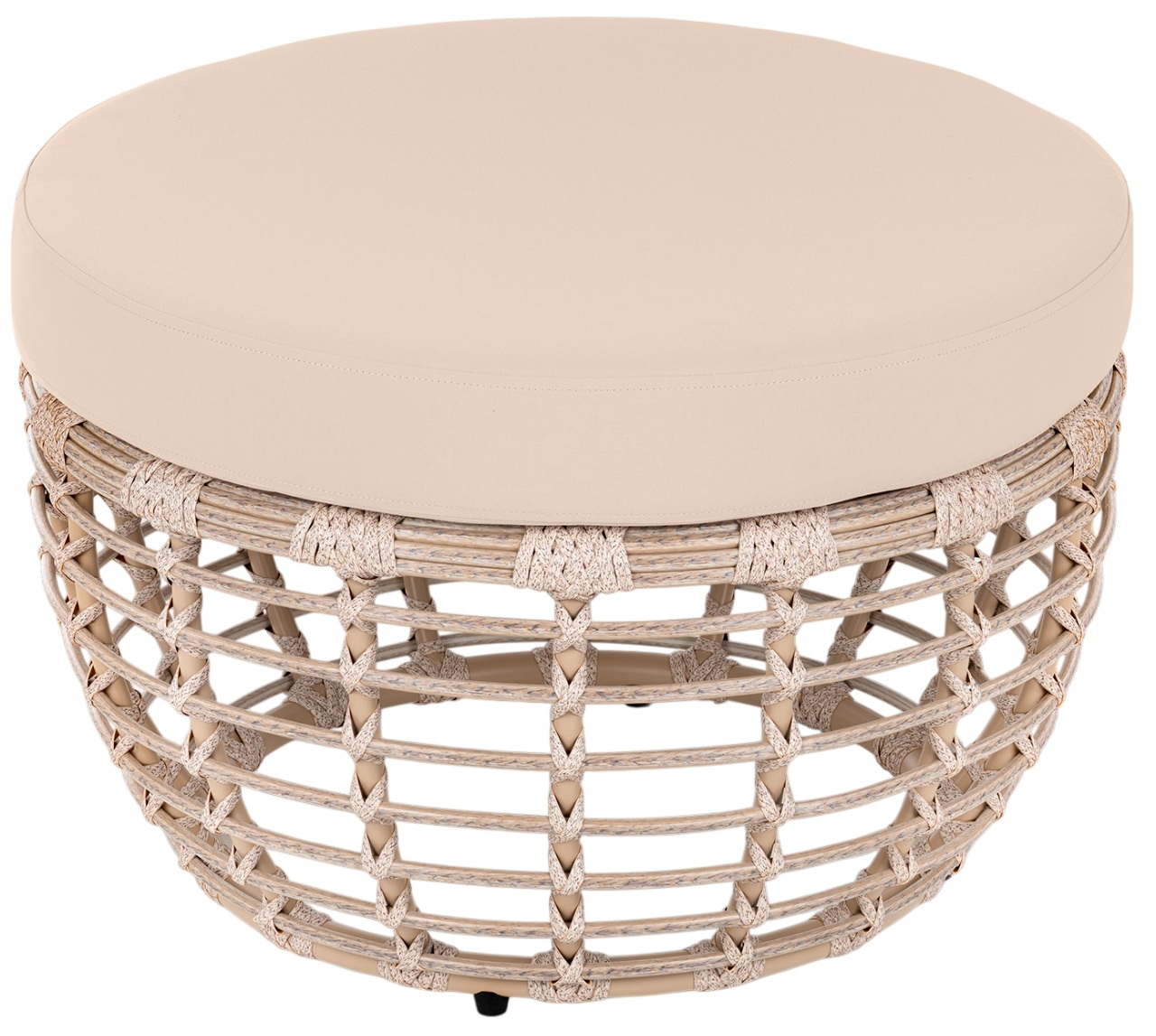 Пуф Lotus - это универсальный элемент для обустройства уличных зон отдыха, органично сочетающий функции дополнительного места для сидения и подставки для ног. Его эстетику определяет аккуратное трубчатое плетение, создающее визуально легкий объем, а надежность обеспечивает алюминиевый каркас. Модель предназначена для круглогодичного использования под навесом и идеально сочетается с другой плетеной мебелью коллекции Lotus.