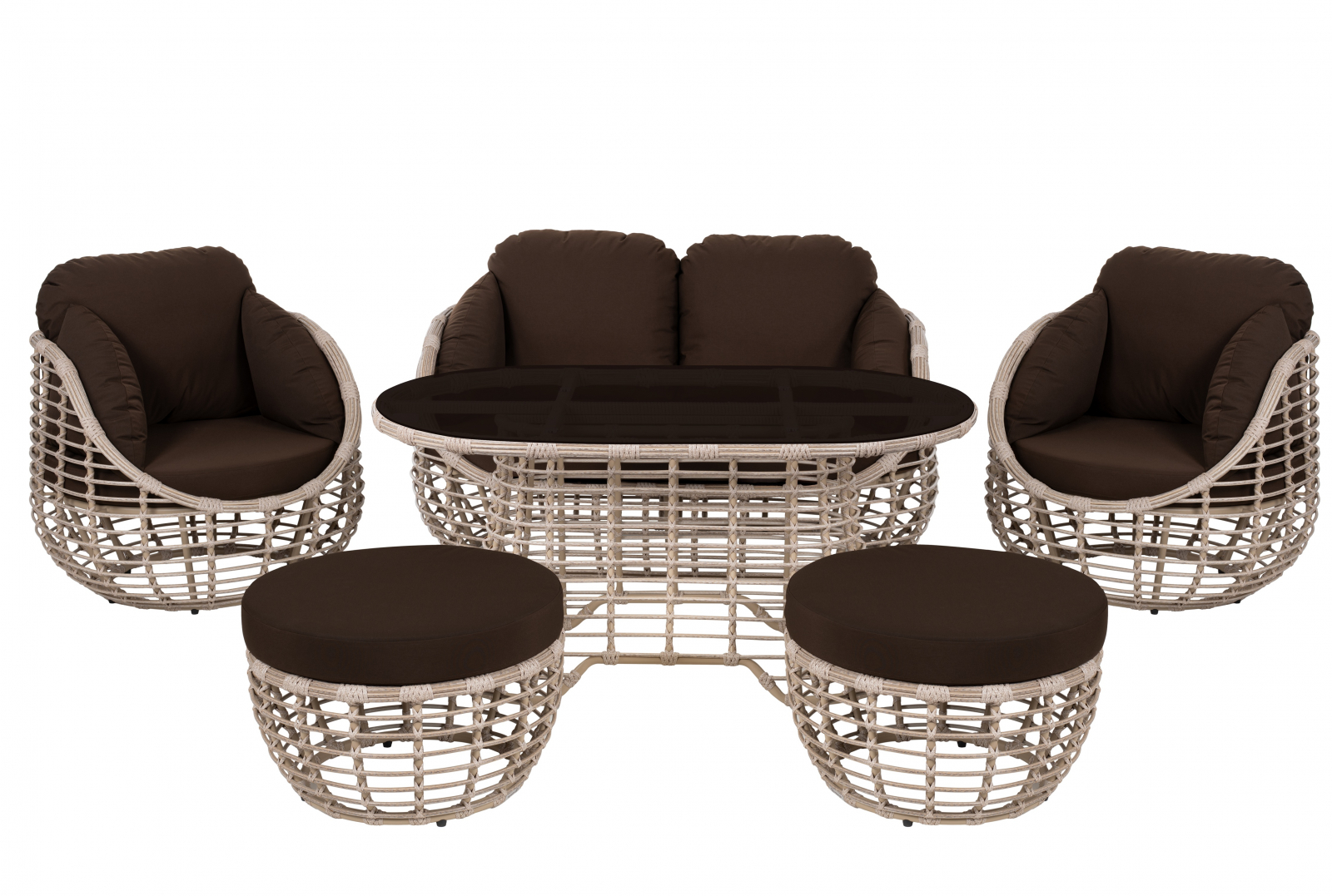 Цена на сайте указана за модель с плетением в цвете Ирбис и обивкой подушек из ткани Jamaica Brown. Для уточнения всех возможных вариантов материала и цвета данного изделия обращайтесь к нашим менеджерам.