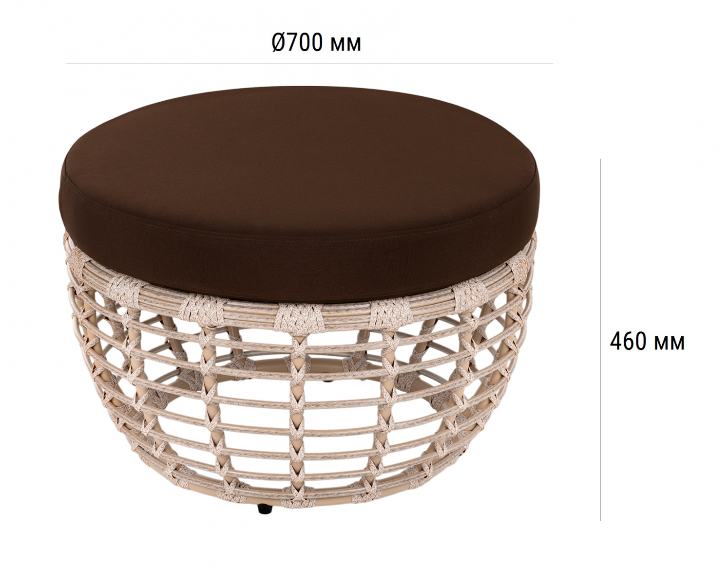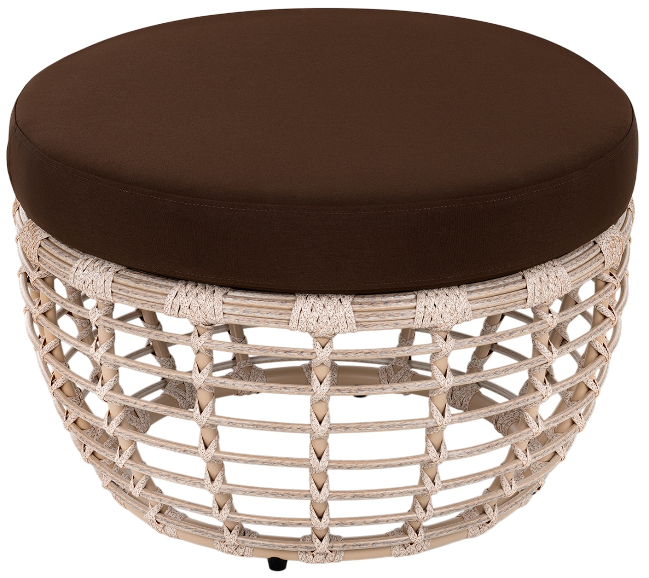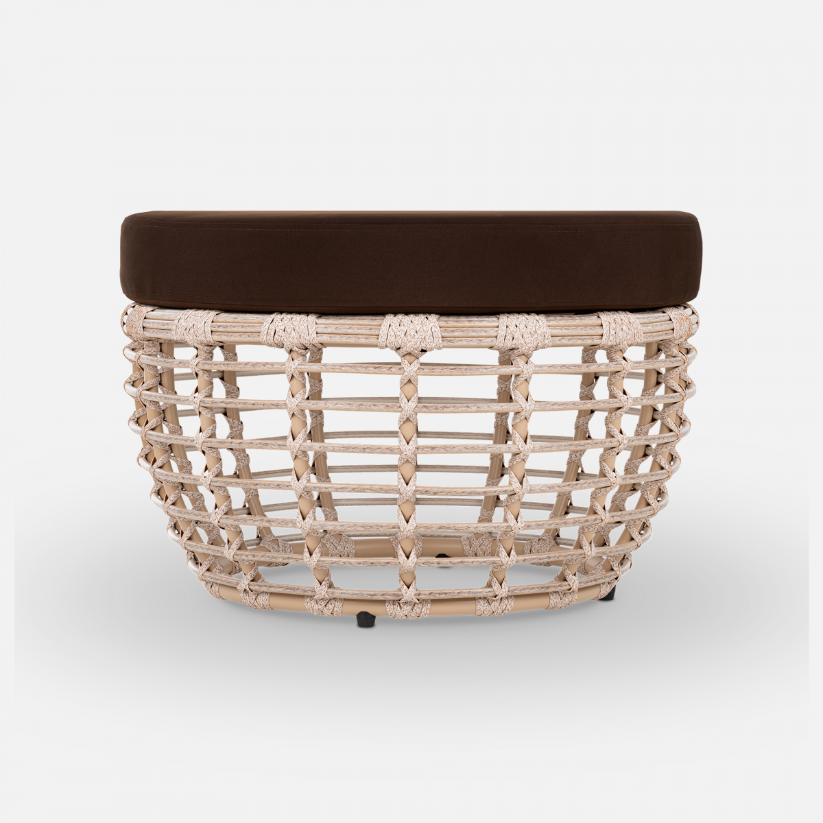 Пуф Lotus - это универсальный элемент для обустройства уличных зон отдыха, органично сочетающий функции дополнительного места для сидения и подставки для ног. Его эстетику определяет аккуратное трубчатое плетение, создающее визуально легкий объем, а надежность обеспечивает алюминиевый каркас. Модель предназначена для круглогодичного использования под навесом и идеально сочетается с другой плетеной мебелью коллекции Lotus.