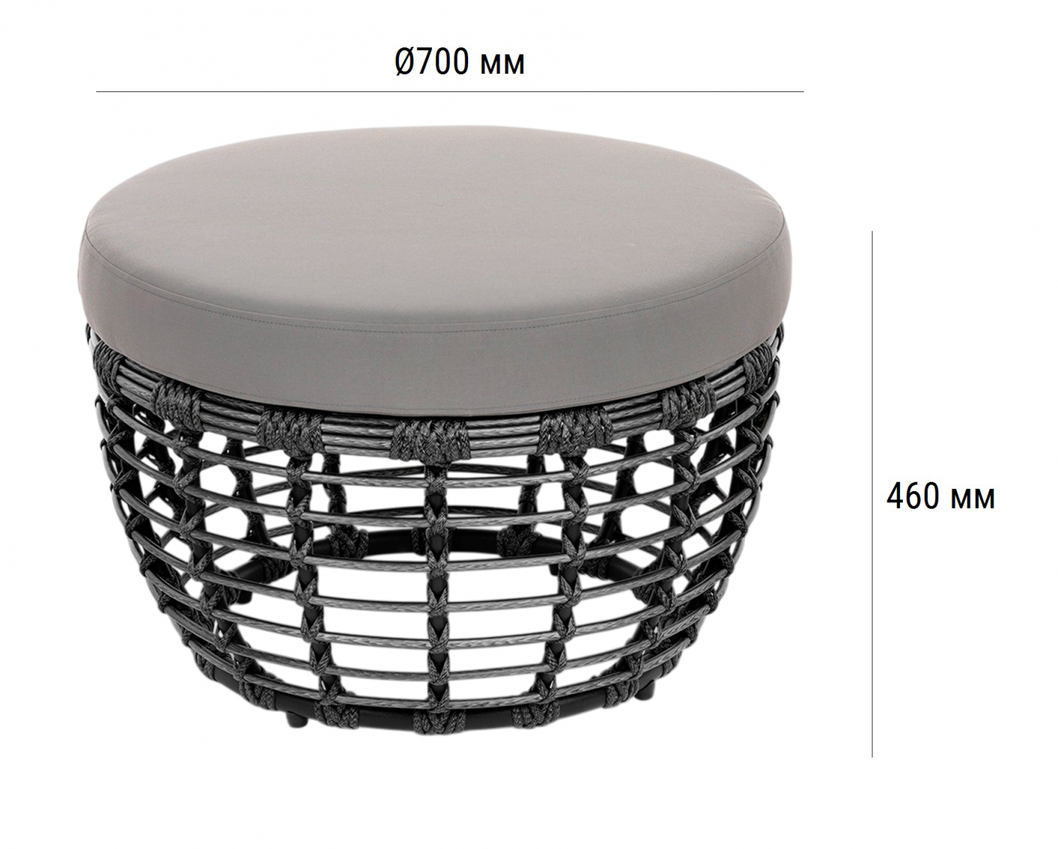 Цена на сайте указана за модель с плетением в цвете Черный металлик и обивкой подушек из ткани Jamaica Grey. Для уточнения всех возможных вариантов материала и цвета данного изделия обращайтесь к нашим менеджерам.