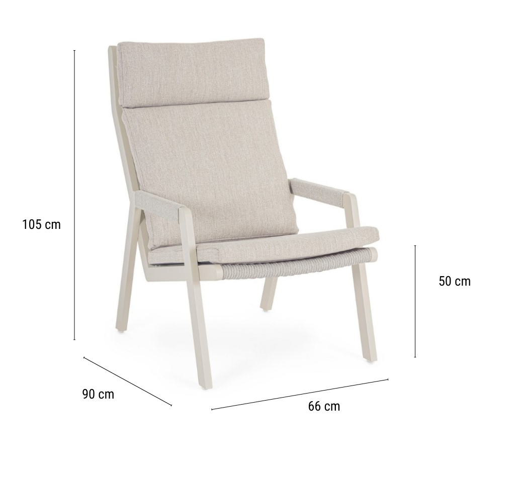Кресло Emery - идеальное сочетание стиля и удобства. Кресло привлекает внимание и станет прекрасным дополнением гостиной зоны на открытом пространстве. Оно изготовлено из алюминия, имеет веревочное плетение и мягкие подушки на сиденье и спинке.