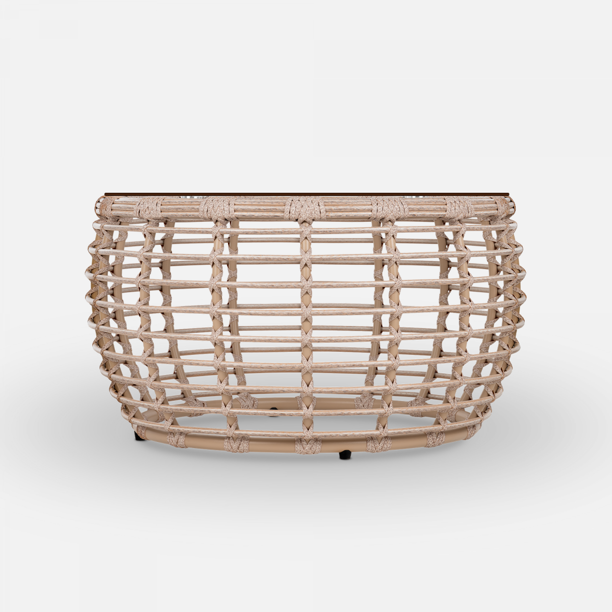 Плавное расширение столика Lotus на середине высоты - как дыхание в такт вашему отдыху. Каждая линия трубчатого ротанга под закаленным стеклом столешницы создает игру теней, превращая обычный вечер в эстетическое удовольствие. Идеальный компаньон для дивана и кресла, где уютно разместятся ритуалы вашего отдыха.