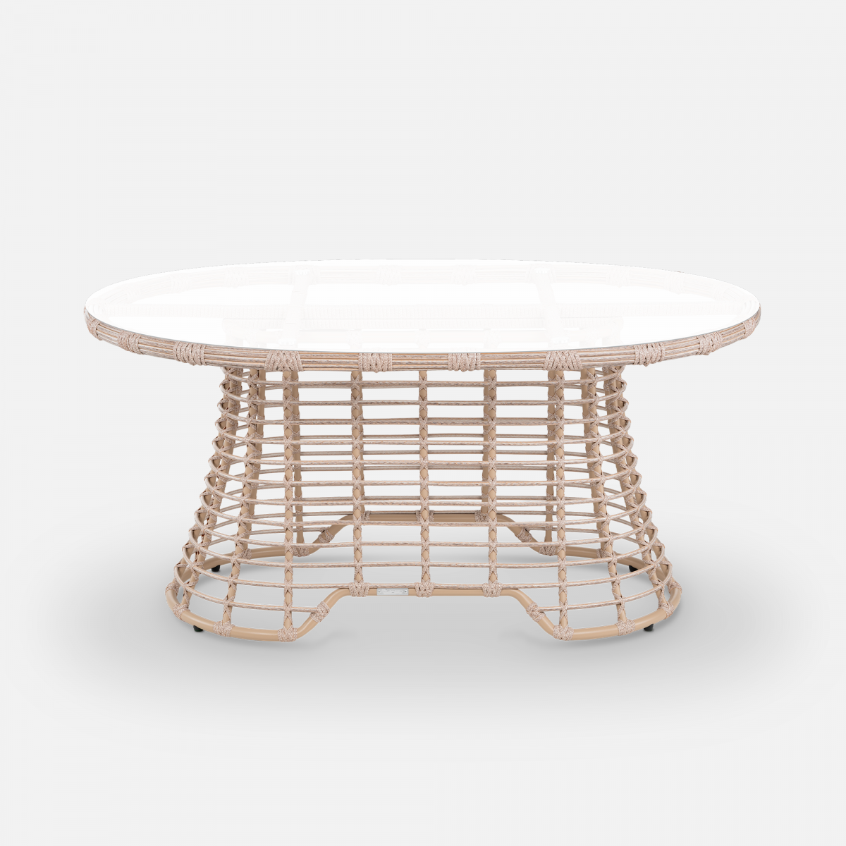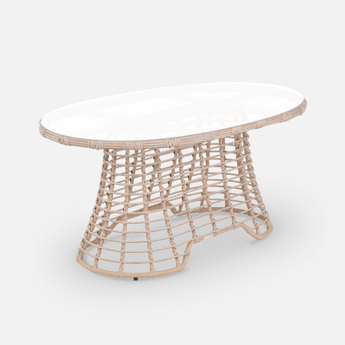 Стол Lotus с элегантной овальной столешницей создан для объединения людей. Плавные, лишенные острых углов линии формируют комфортную и гостеприимную атмосферу, идеальную для неспешных обедов и теплого общения. Визуальную глубину и уникальный характер модели подчеркивает многослойная структура: под прочной столешницей из закаленного стекла скрывается тонкое ажурное плетение искусственного ротанга. Эта игра текстур и материалов создает динамичный световой эффект, где блики естественного или искусственного света оживляют поверхность, добавляя сервировке особый шарм.