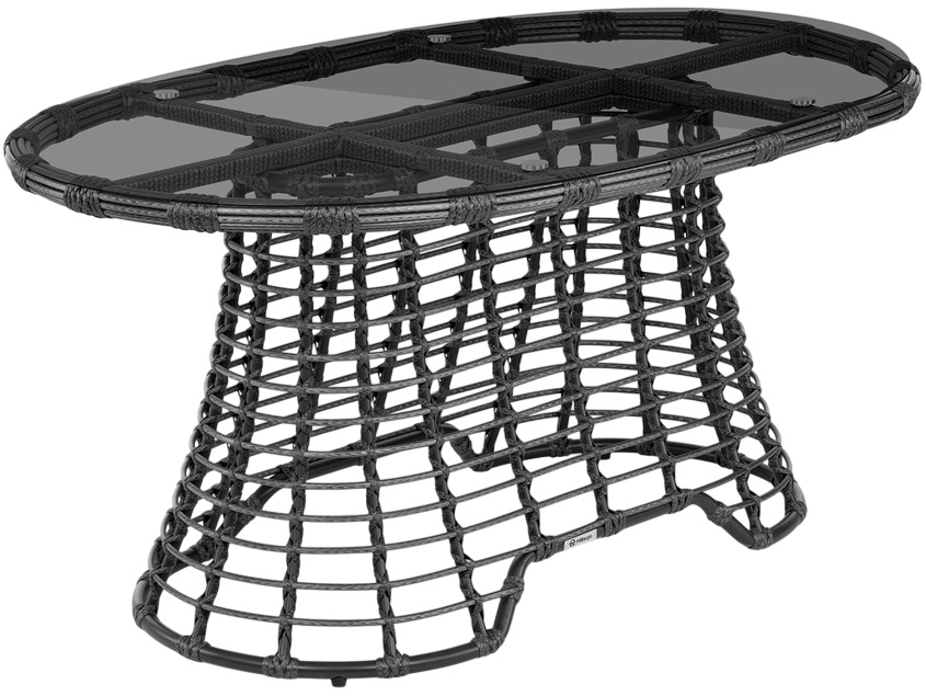 Стол Lotus с элегантной овальной столешницей создан для объединения людей. Плавные, лишенные острых углов линии формируют комфортную и гостеприимную атмосферу, идеальную для неспешных обедов и теплого общения. Визуальную глубину и уникальный характер модели подчеркивает многослойная структура: под прочной столешницей из закаленного стекла скрывается тонкое ажурное плетение искусственного ротанга. Эта игра текстур и материалов создает динамичный световой эффект, где блики естественного или искусственного света оживляют поверхность, добавляя сервировке особый шарм.