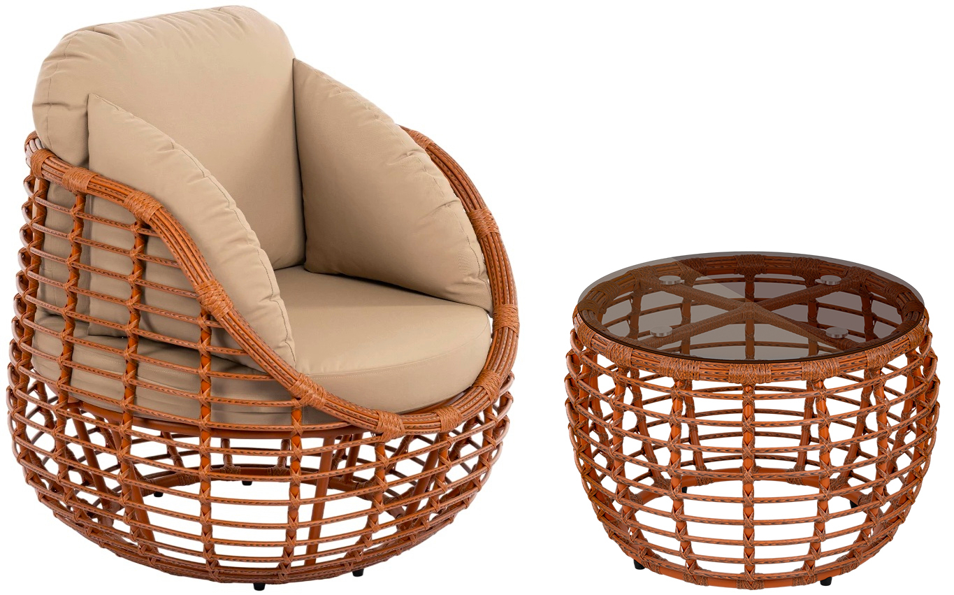 Практичность продумана до мелочей. Устойчивые к влаге и ультрафиолету материалы - алюминиевый каркас, искусственный ротанг и закаленное стекло - гарантируют долговечность и простой уход. Этот ансамбль - готовое и стильное решение для террасы, зоны у бассейна или коммерческого пространства.