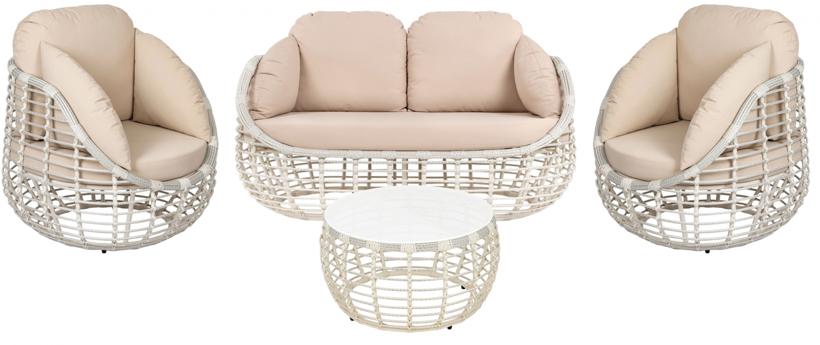 Сформируйте просторную и невероятно уютную зону для отдыха в кругу семьи или друзей с готовым ансамблем Lotus. Композицию задаёт удобный двухместный диван, который в паре с глубокими креслами образует гармоничный полукруг для непринуждённого общения. Каждое место в этой группе - это воплощение комфорта и эргономики, с цельной «чашей» сиденья, обеспечивающей идеальную поддержку. Центральным акцентом служит изящный кофейный столик с ажурным плетением, который объединяет пространство, сохраняя его воздушность и добавляя интерьеру визуальной глубины.