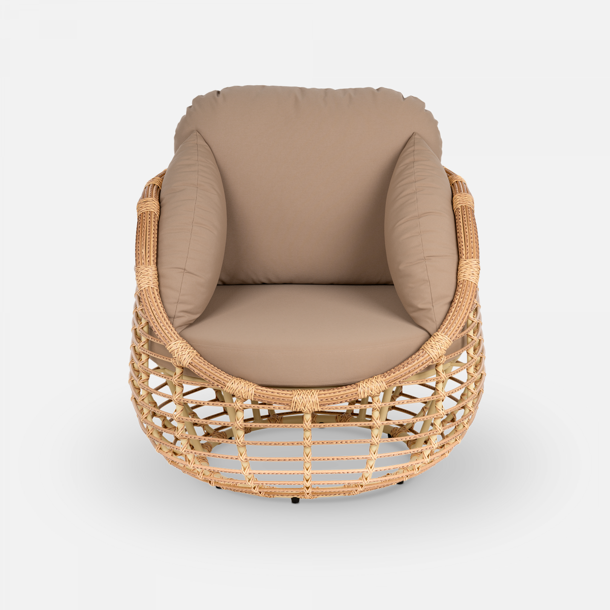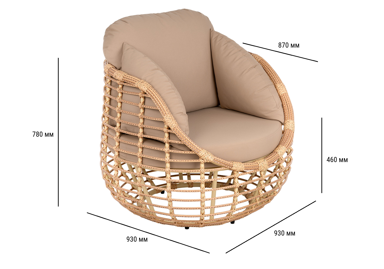 Практичность продумана до мелочей. Устойчивые к влаге и ультрафиолету материалы - алюминиевый каркас, искусственный ротанг и закаленное стекло - гарантируют долговечность и простой уход. Этот ансамбль - готовое и стильное решение для террасы, зоны у бассейна или коммерческого пространства.