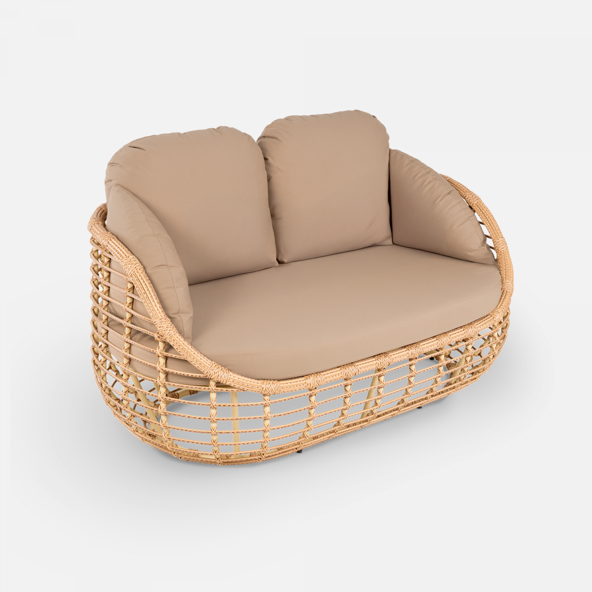 Цена на сайте указана за комплект с плетением в цвете Индийское дерево и обивкой подушек из ткани Jamaica Cappucino. Для уточнения всех возможных вариантов материала и цвета данного изделия обращайтесь к нашим менеджерам.
