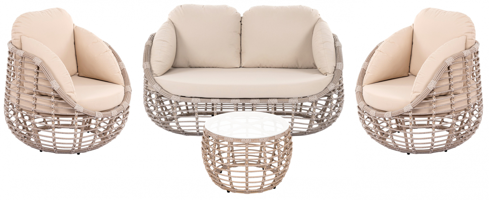 Цена на сайте указана за комплект с плетением в цвете Ирбис и обивкой подушек из ткани Jamaica Beige. Для уточнения всех возможных вариантов материала и цвета данного изделия обращайтесь к нашим менеджерам.