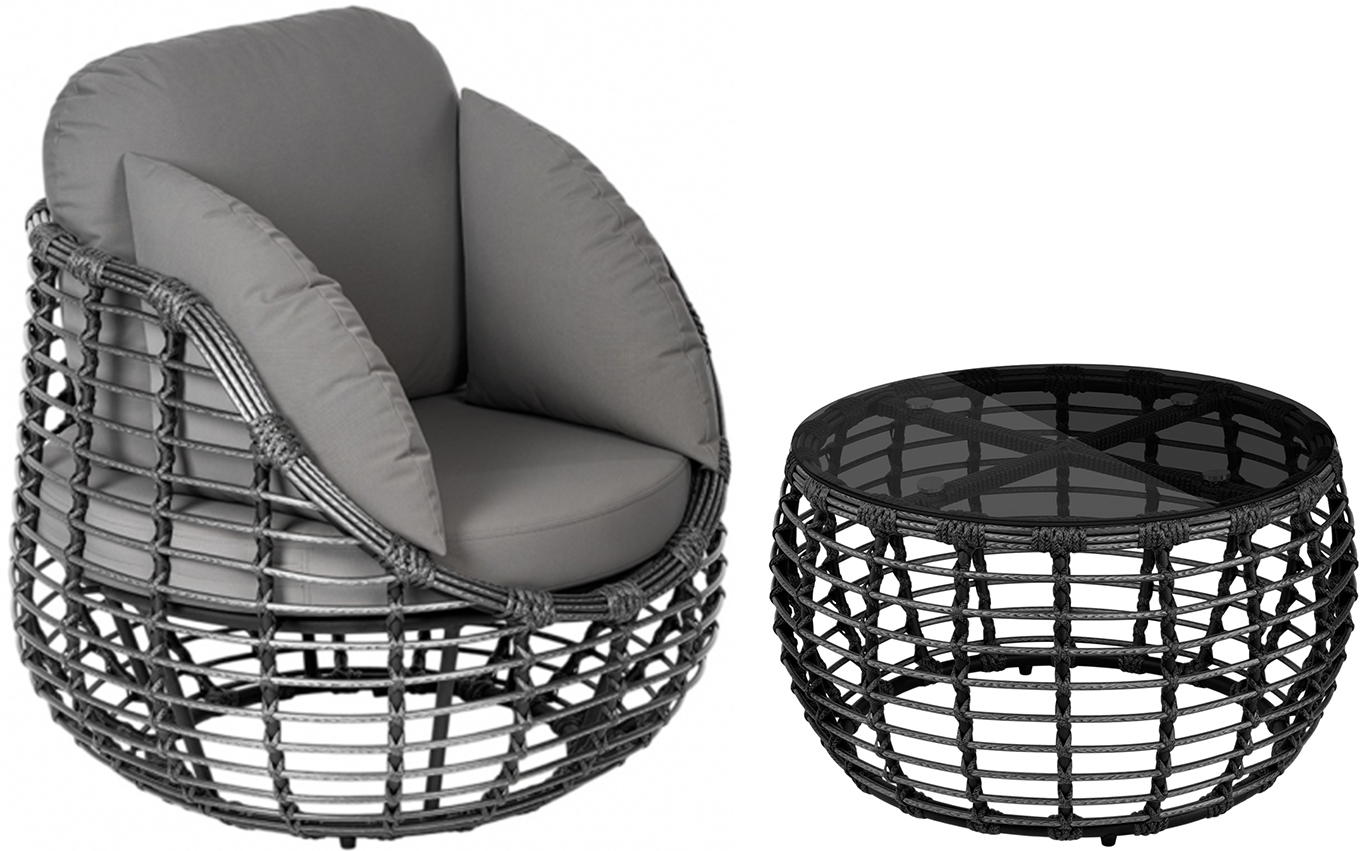 Цена на сайте указана за комплект с плетением в цвете Черный металлик и обивкой подушек из ткани Jamaica Grey. Для уточнения всех возможных вариантов материала и цвета данного изделия обращайтесь к нашим менеджерам.