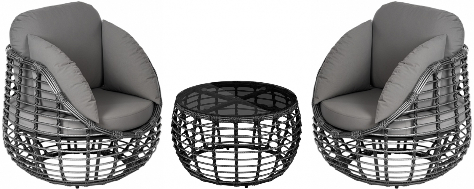 Практичность ансамбля обеспечивается продуманным выбором материалов. Прочные алюминиевые каркасы, устойчивое к погодным условиям плетение и закалённое стекло столешницы гарантируют долговечность и простой уход. Этот сбалансированный комплект - готовое элегантное решение для оформления террасы, патио или зоны отдыха, где каждая деталь подчеркивает единство стиля, комфорта и надёжности.
