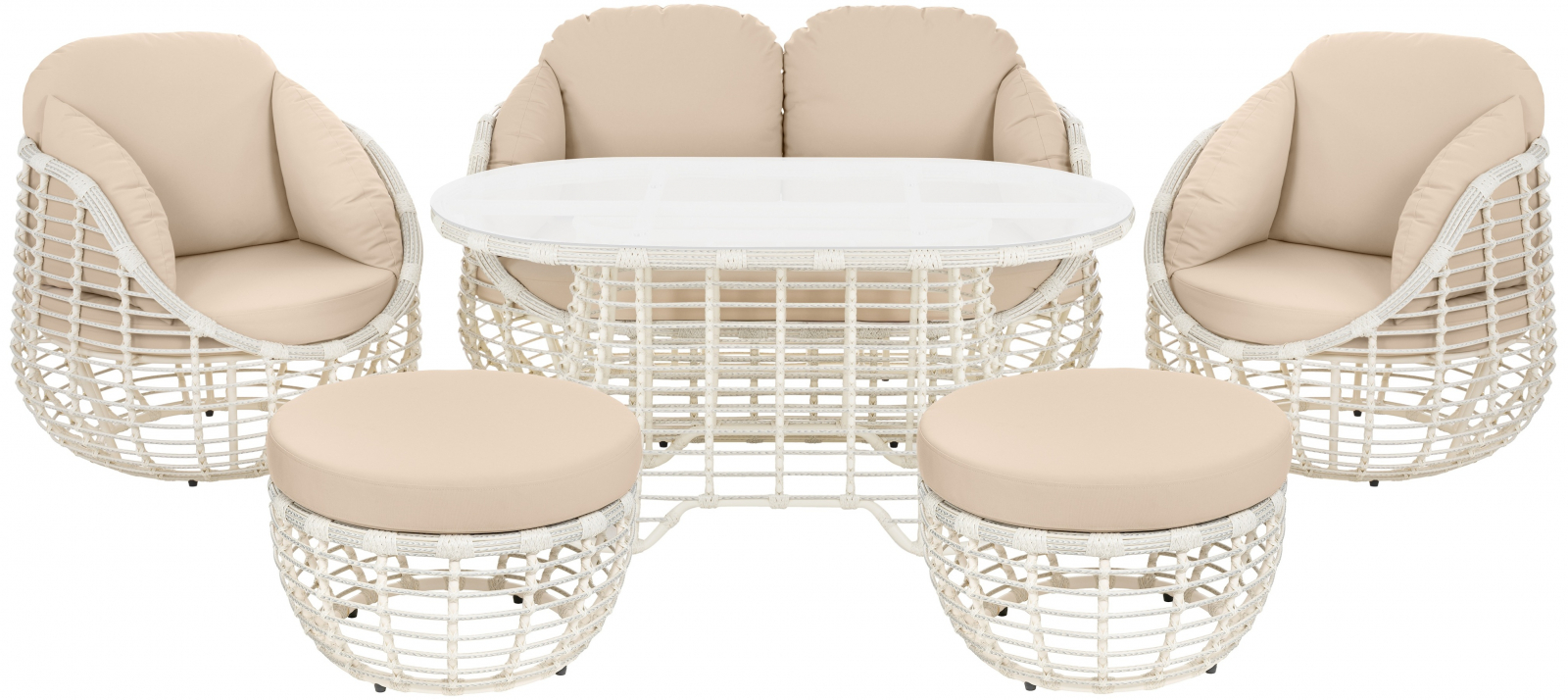 Цена на сайте указана за комплект с плетением в цвете Доминикана и обивкой подушек из ткани Jamaica Beige. Для уточнения всех возможных вариантов материала и цвета данного изделия обращайтесь к нашим менеджерам.