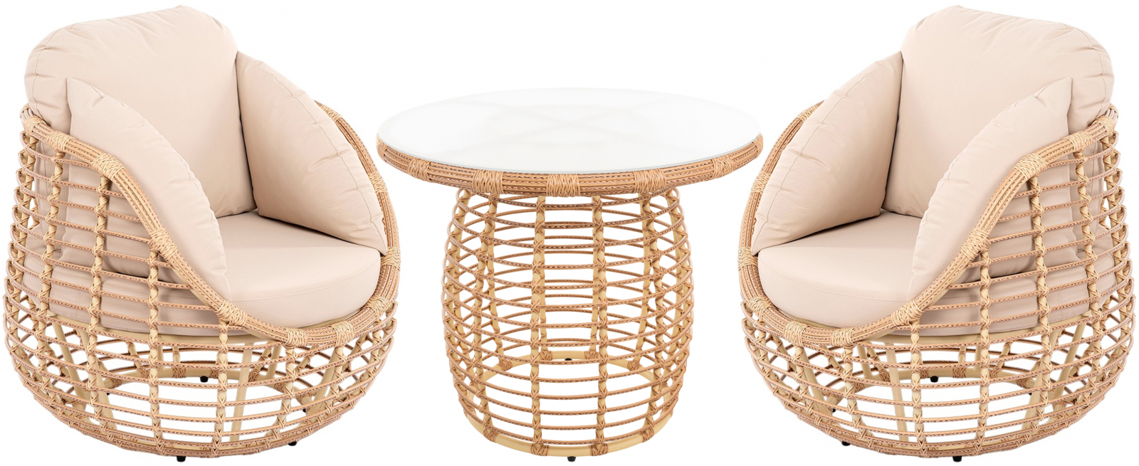 Каждый элемент комплекта создан для долговечной эксплуатации. Прочные алюминиевые каркасы с порошковой окраской, устойчивые к влаге и ультрафиолету материалы, а также практичное закаленное стекло столешницы обеспечивают надежность и простой уход. Этот комплект станет изысканным и практичным украшением вашей террасы или патио, предлагая комфорт и эстетическое удовольствие в любую погоду.