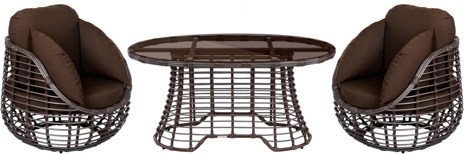 Создайте стильную и комфортную обеденную зону на открытом воздухе с гармоничным комплектом из двух кресел и обеденного стола коллекции Lotus. Ансамбль объединяет глубокую, расслабляющую посадку кресел с выразительным округлым силуэтом и элегантную легкость стола с ажурным плетением под стеклом. Единый дизайн из искусственного ротанга и продуманная эргономика создают визуальное и функциональное единство, идеальное для непринужденных бесед и приемов гостей.