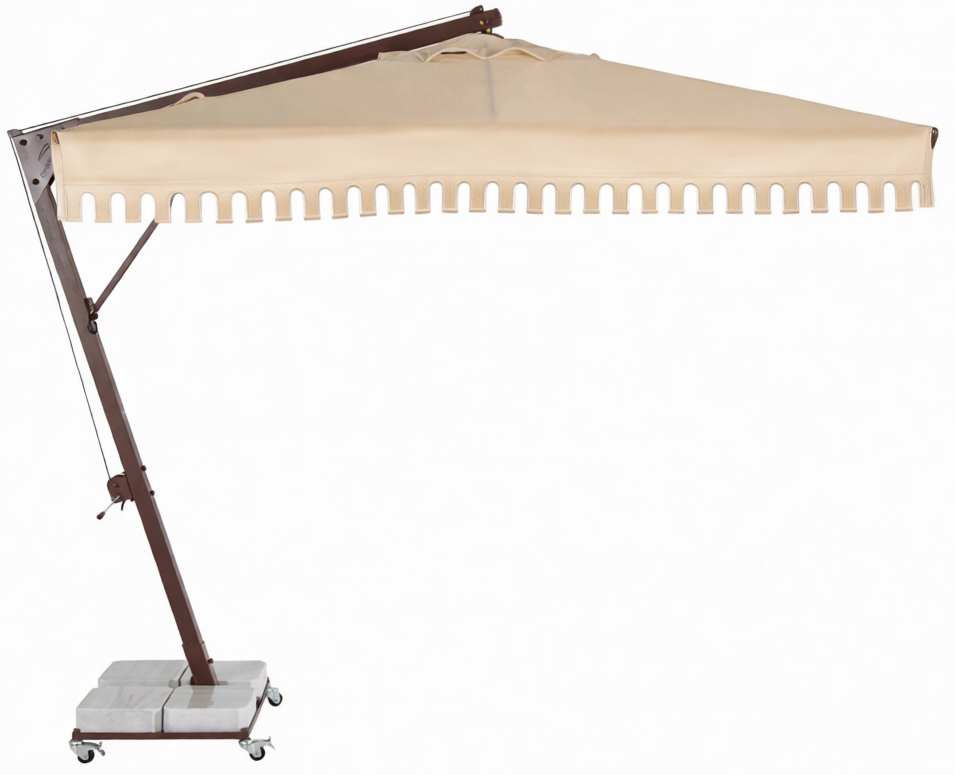 Наличие боковой опоры зонта гарантирует, что тень зонта используется более эффективно, чем с зонтами с центральной стойкой. Зонты Banana изготавливаются разных размеров и форм с учетом различных областей применения и размеров затеняемой площади. Зонты квадратной формы можно поставить в ряд, чтобы полностью закрыть зону затенения. Это предлагает вам очень гибкое и экономичное решение по сравнению с перголой или другими типами навесов.