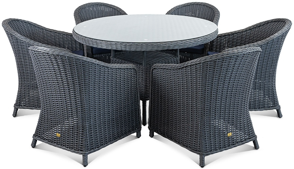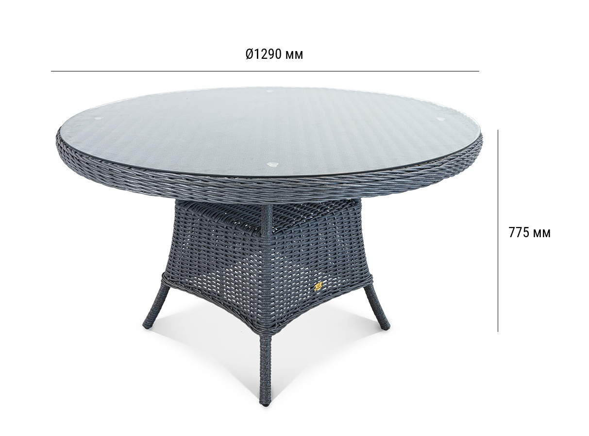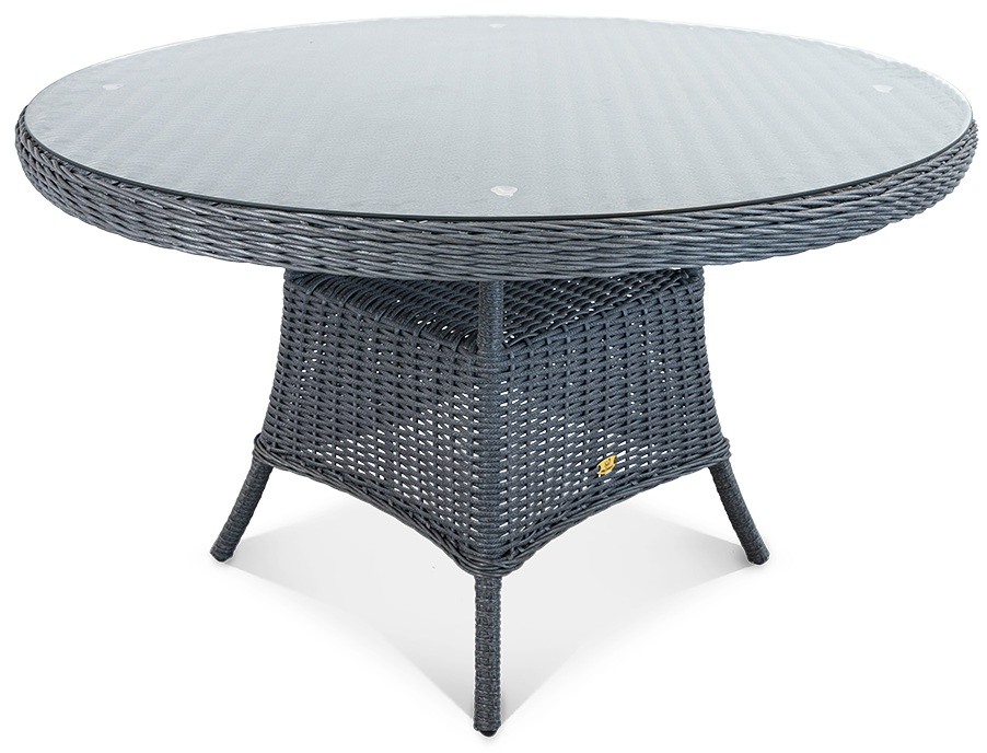 Стол Primo круглой формы рассчитан на комфортное размещение шести персон. Его прочная основа - цельносварной алюминиевый каркас с износостойким порошковым покрытием, дополненный долговечным плетением из искусственного ротанга. Практичная столешница из закаленного стекла легко вписывается в любой интерьер и неприхотлива в уходе.