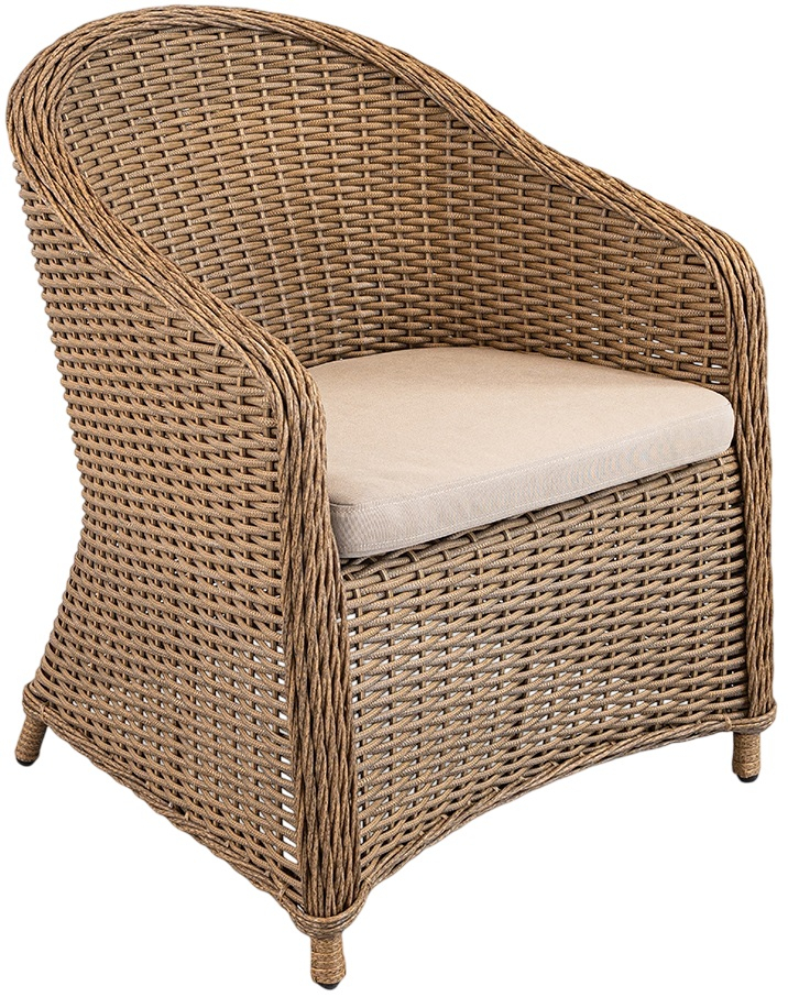 Практичность и уют продуманы до мелочей: каждое кресло оснащено мягкой подушкой со съемным чехлом из износостойкой ткани, за которым легко ухаживать, а просторная столешница из закаленного стекла не только визуально расширяет пространство, но и отличается неприхотливостью. Этот комплект демонстрирует оптимальный баланс между утонченным дизайном и функциональной надежностью, делая его идеальным выбором как для частной террасы или патио, так и для активного использования в сфере гостеприимства - в ресторанах, отелях и открытых кафе, где важны долговечность и безупречный стиль.