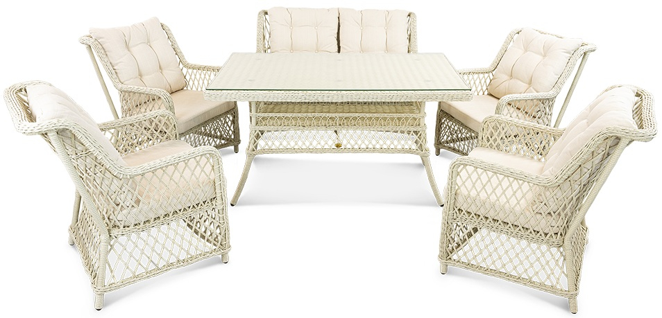 Цена на сайте указана за комплект с плетением в цвете Доминикана и обивкой подушек из ткани Mossle 100. Для уточнения всех возможных вариантов материала и цвета данного изделия обращайтесь к нашим менеджерам.