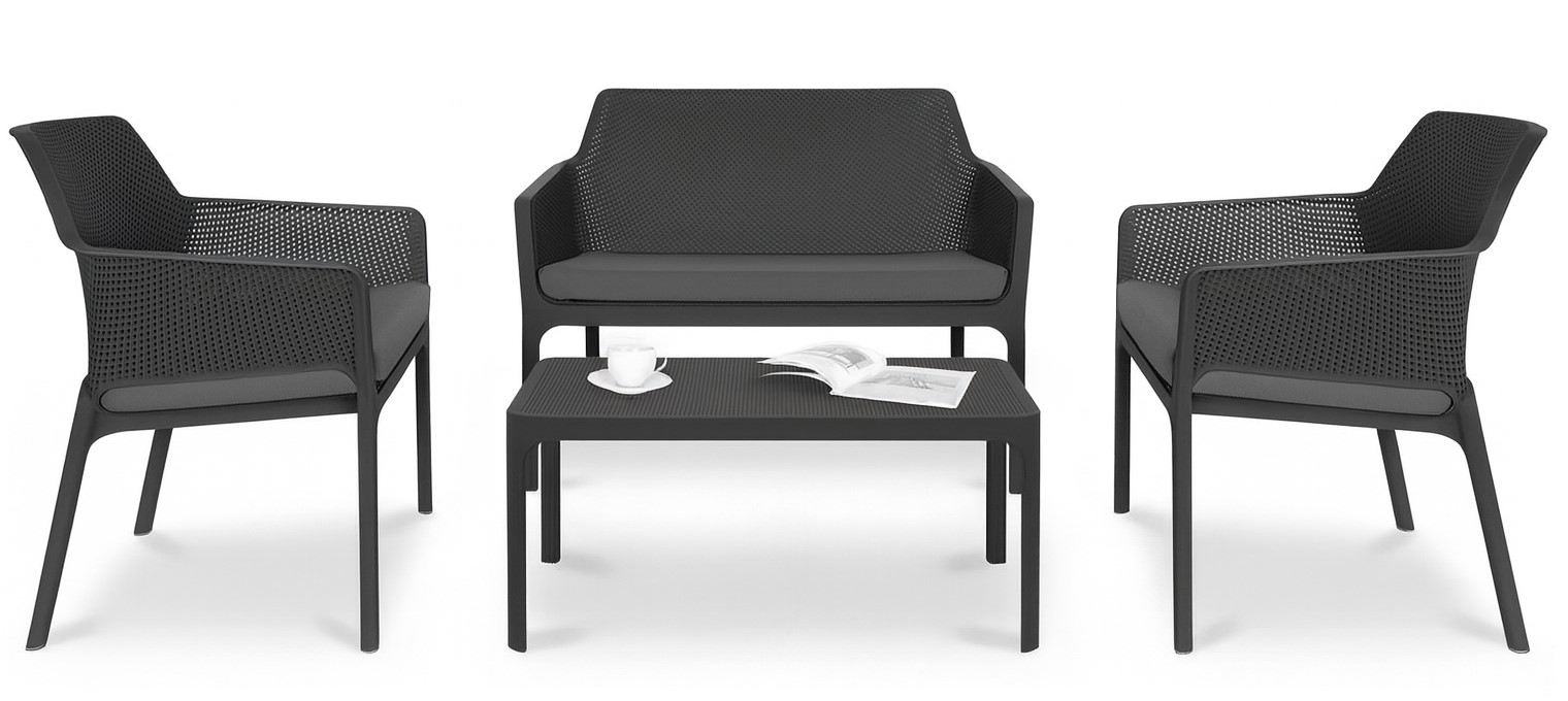 Net - удобный и романтический комплект из стеклопластика для использования на открытом воздухе. Четкие силуэты и тонкие профили отличает мебель этой коллекции. Диван Net Bench вместе с креслами Net Relax и журнальным столом Net Table дополняет Nardi Net Collection, обогащая её новой привлекательностью, перед которой невозможно устоять. Разработанный для домашних условий, но соответствующий требованиям сферы Contract, комплект Net - это отличный способ для обстановки даже самого изысканного открытого пространства, производя творческие комбинации со стилем и цветом.