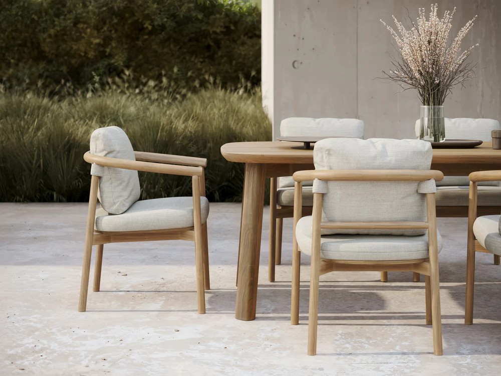 Конструкция, полностью выполненная из тикового дерева, украшена тонкой отделкой, что максимально повышает ее функциональность и эргономичность. Коллекция Lyora представлена креслами, а также двухместными и трехместными диванами компактных размеров и модульными конструкциями с обволакивающими линиями.