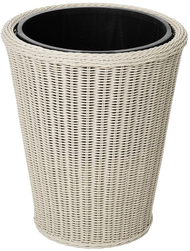 Вместительный объём позволяет высаживать крупные растения, кустарники или небольшие деревья. Кашпо отличается легкостью, удобством транспортировки и снабжено системой дренажа. Идеально подходит для оформления террас, ресторанов, отелей и частных садов, сочетая эстетику натурального плетения с практичностью современных материалов.