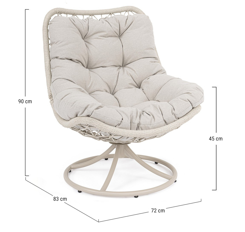Погрузитесь в атмосферу релаксации с вращающимся лаунж-креслом Azores. Это не просто место для отдыха - это стильный акцент, который добавит вашему пространству динамики и уюта благодаря своей уникальной конструкции и эргономичному дизайну. Кресло установлено на вращающуюся базу, позволяя поворачиваться на 360 градусов и наслаждаться видом или общением под любым удобным углом. Благодаря своему современному дизайну и прочной конструкции, кресло Azores идеально подойдет как для уютного уголка в гостиной, так и для террасы или балкона.