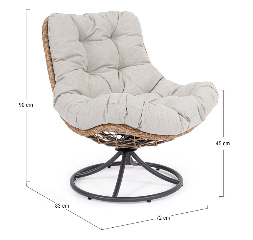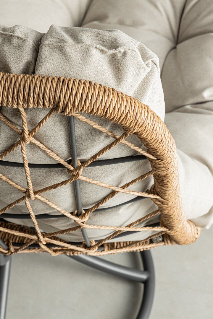 Погрузитесь в атмосферу релаксации с вращающимся лаунж-креслом Azores. Это не просто место для отдыха - это стильный акцент, который добавит вашему пространству динамики и уюта благодаря своей уникальной конструкции и эргономичному дизайну. Кресло установлено на вращающуюся базу, позволяя поворачиваться на 360 градусов и наслаждаться видом или общением под любым удобным углом. Благодаря своему современному дизайну и прочной конструкции, кресло Azores идеально подойдет как для уютного уголка в гостиной, так и для террасы или балкона.