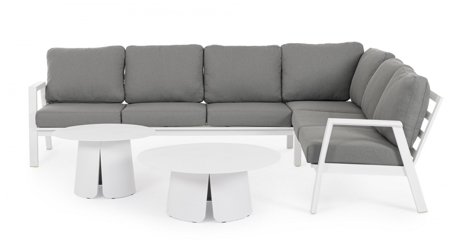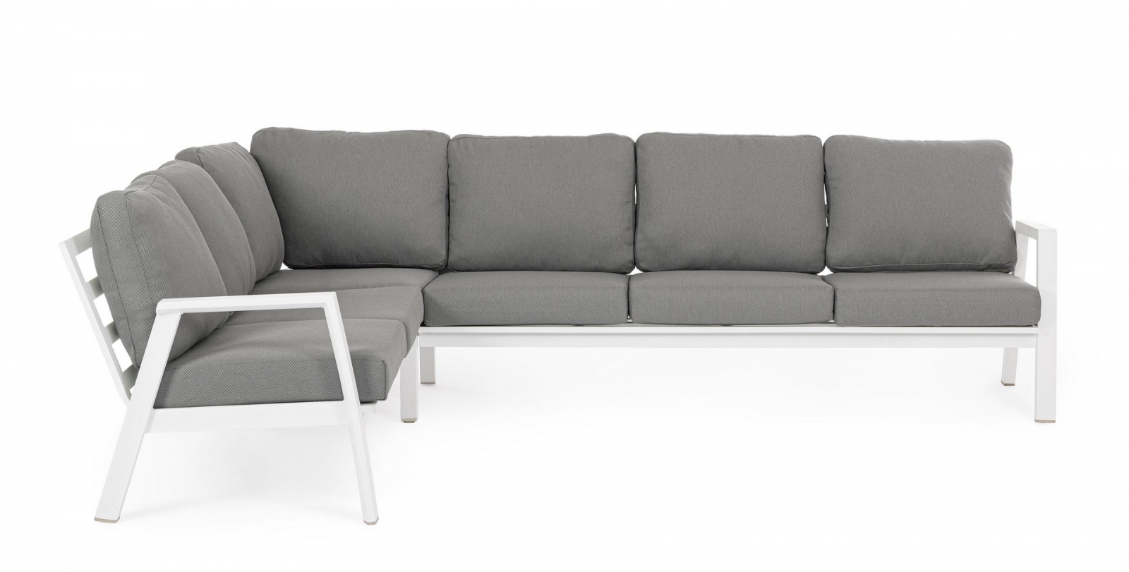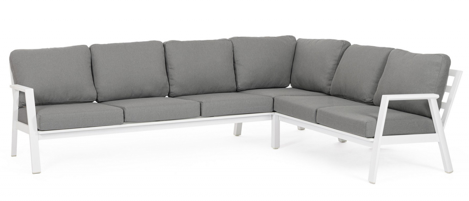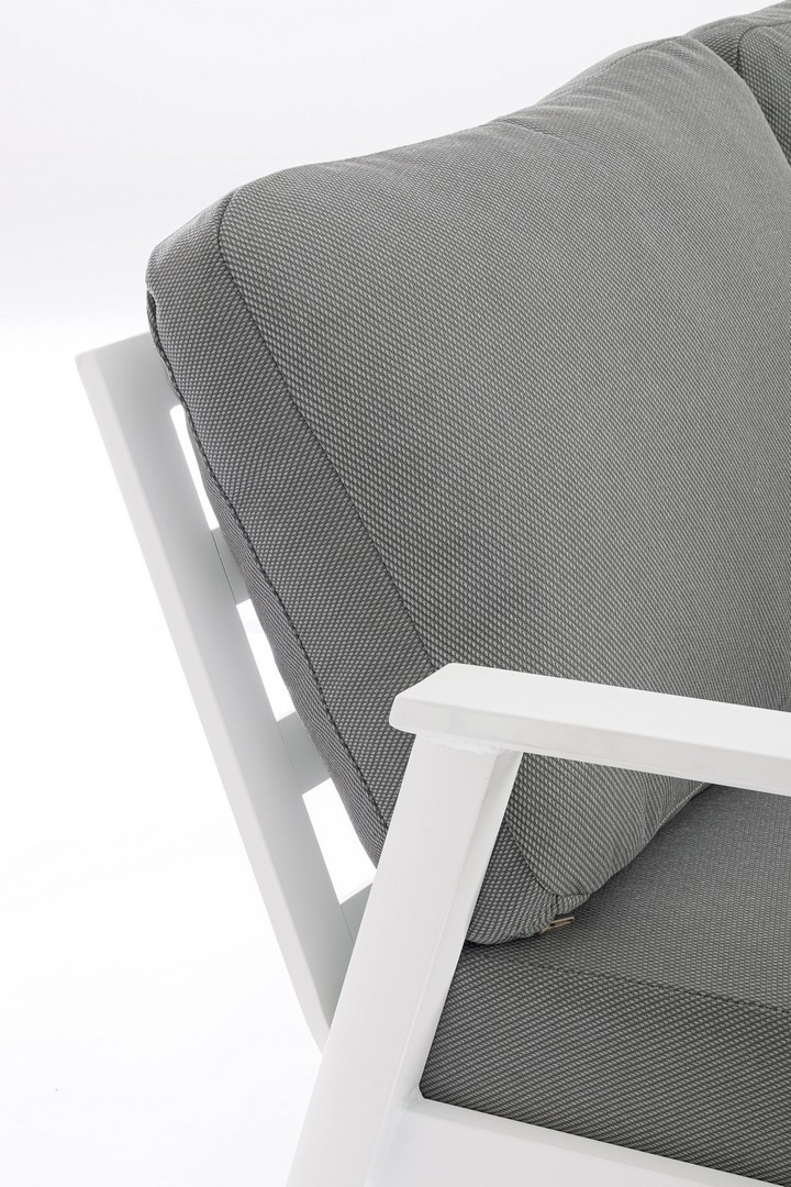 Лаунж комплект мебели Flaminio - это элегантное и функциональное решение для современных пространств. Он идеально подойдет для обустройства террасы или летней площадки частного дома. Набор состоит из 3 элементов: двухместный и трехместный модули можно размещать по обе стороны от углового элемента, создавая гибкую конфигурацию.