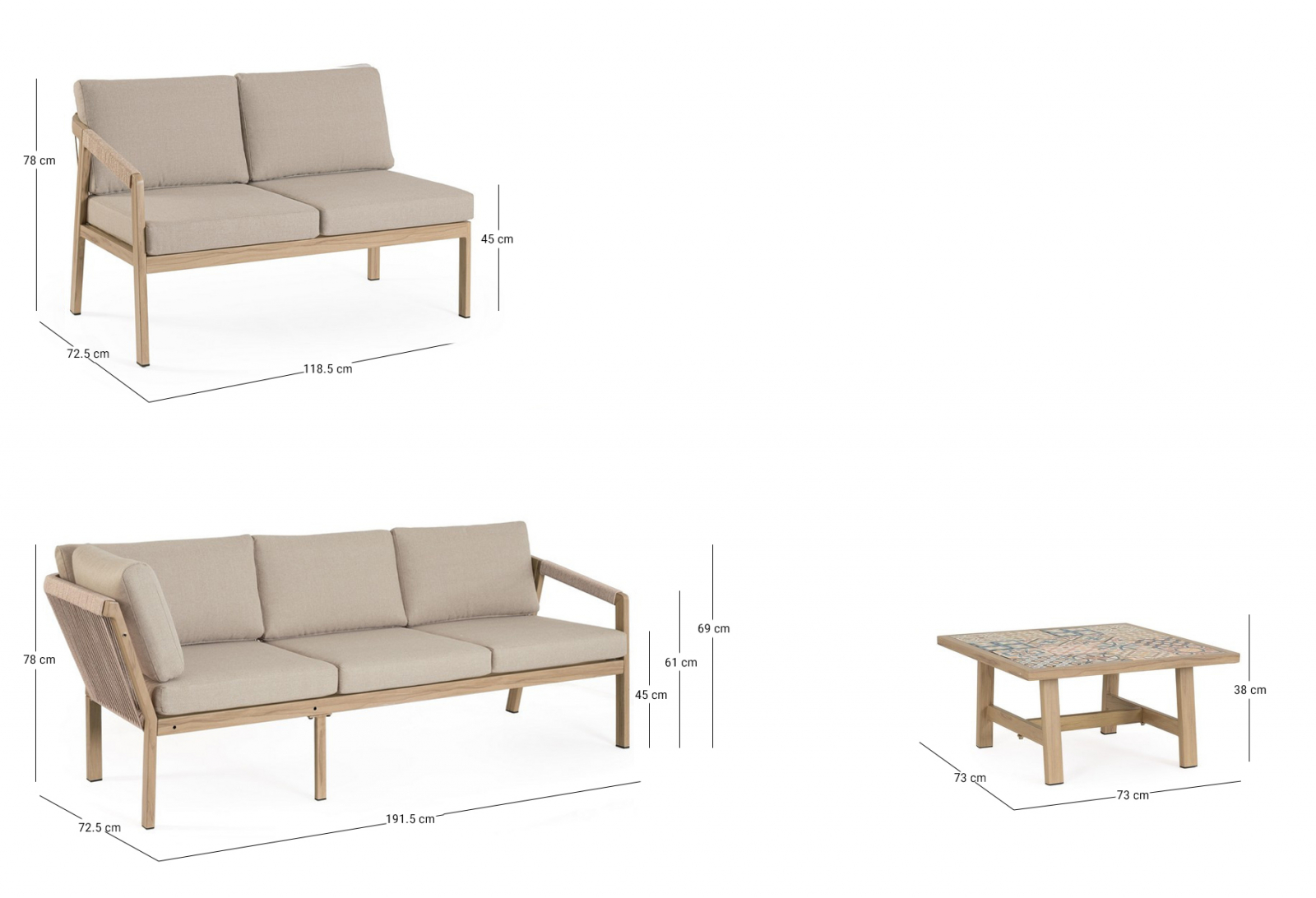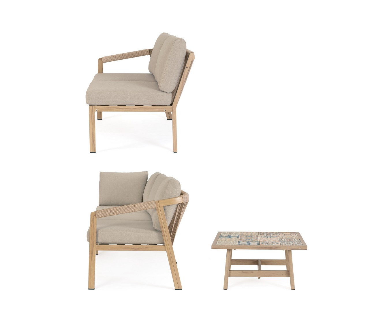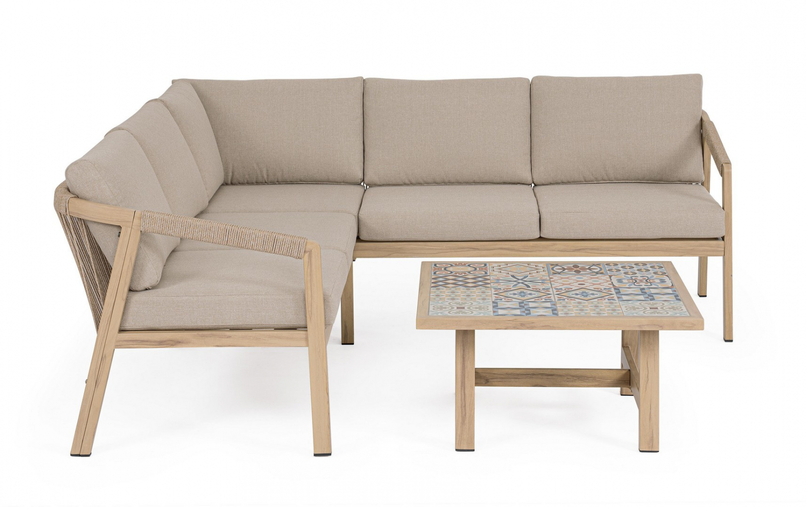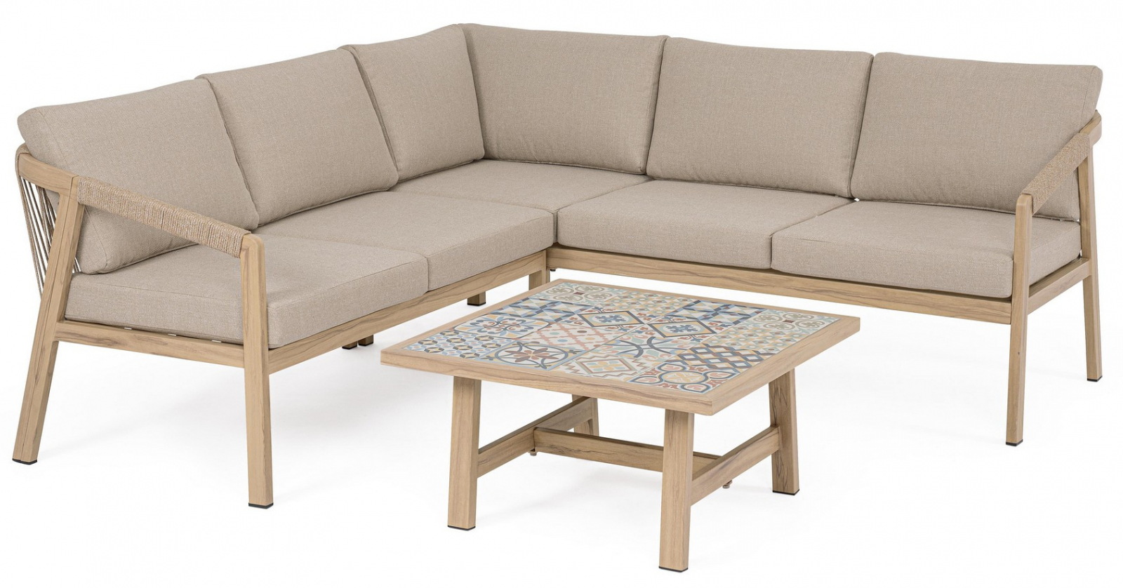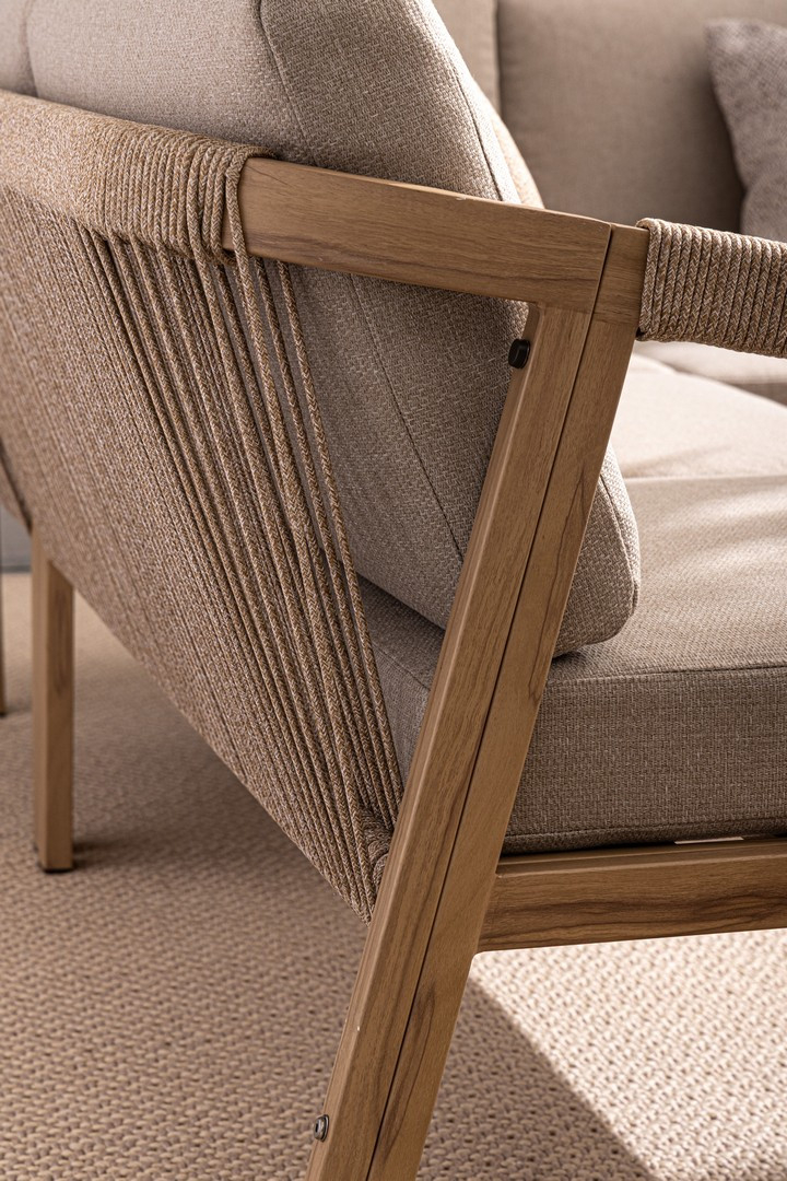 Угловой лаунж комплект мебели Kalimera - это современное и функциональное решение для создания уютной зоны отдыха на террасе, в саду или на патио. Дизайн сочетает в себе натуральные оттенки и современные формы, идеально вписывающиеся в любое пространство.