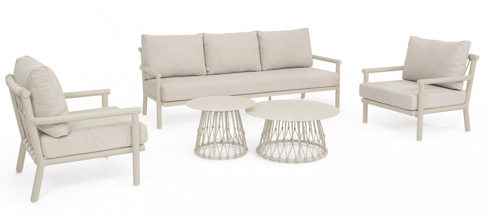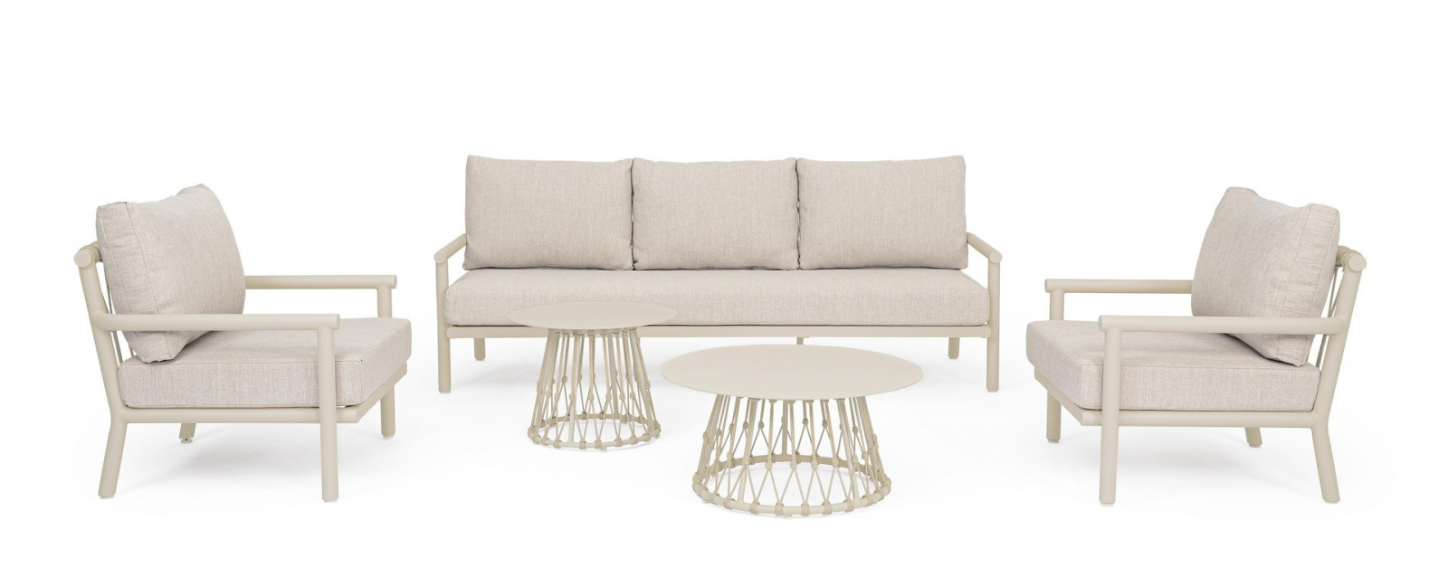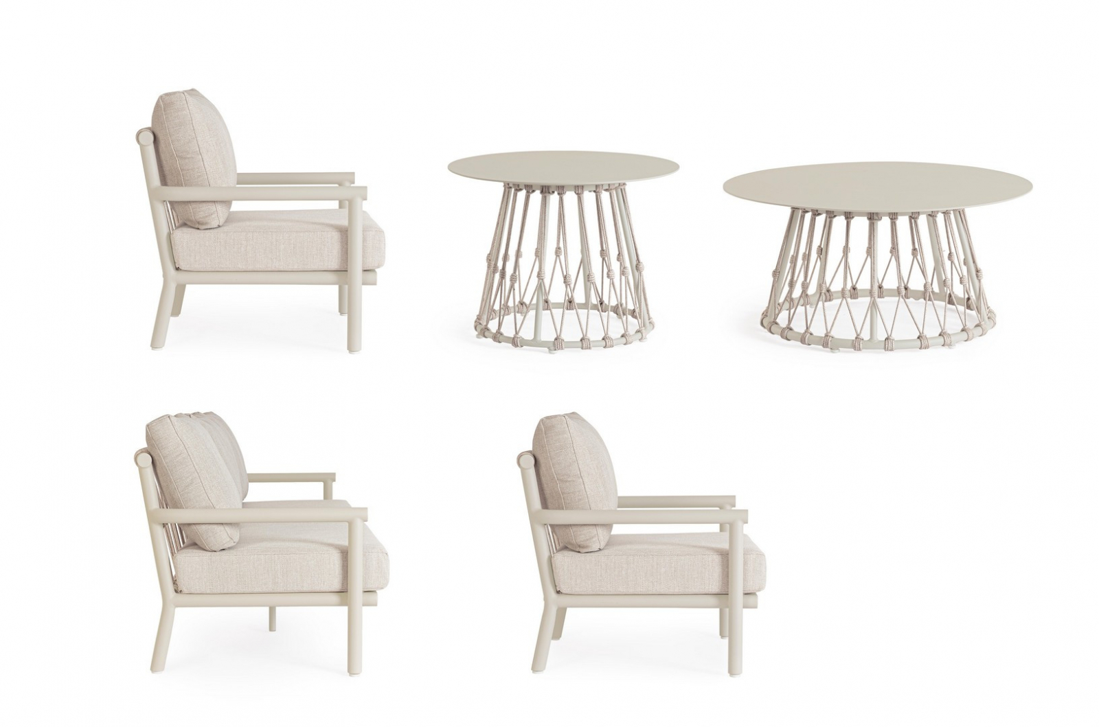 Лаунж комплект мебели Lanai - это стильное и практичное решение для обустройства комфортной зоны отдыха на террасе, в саду или на патио. Его дизайн в мягких песочных оттенках гармонично соединяет современные силуэты и природные текстуры, органично дополняя любое пространство.