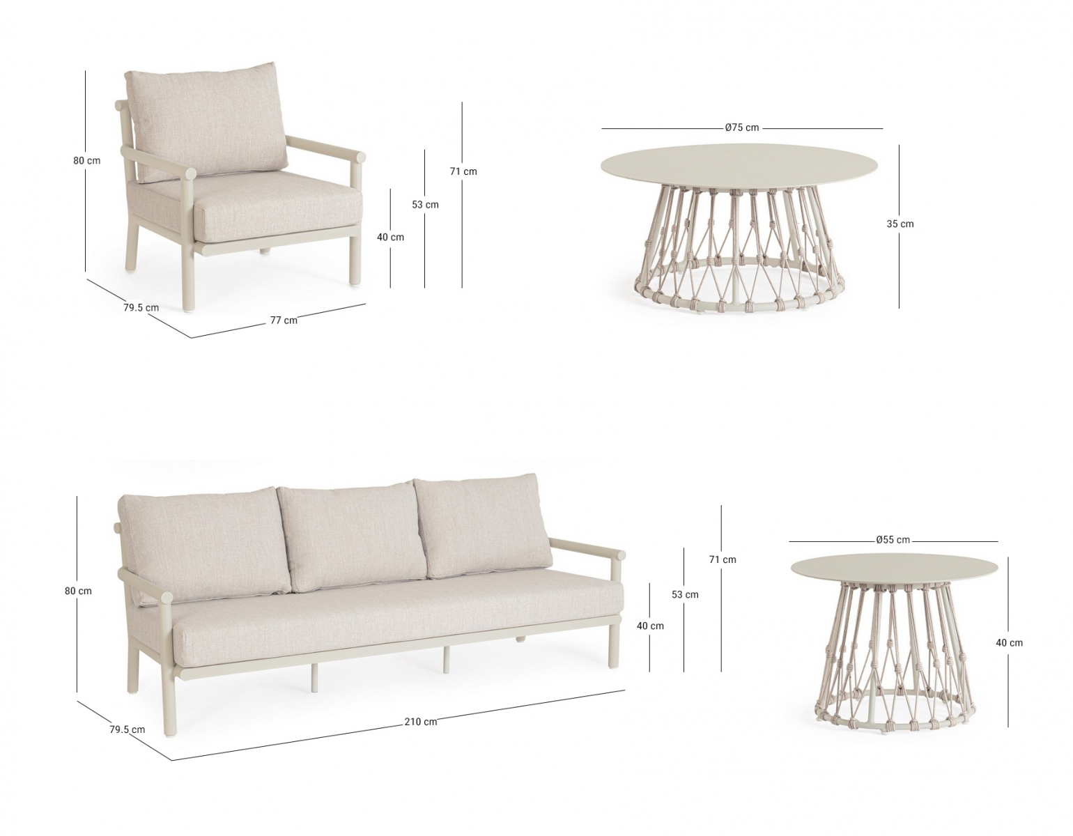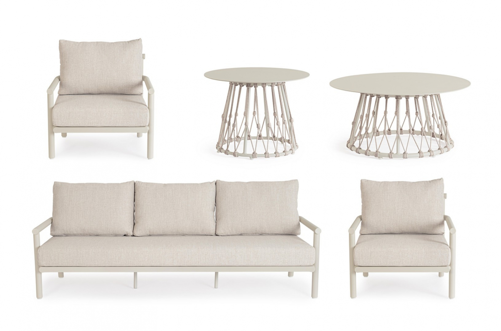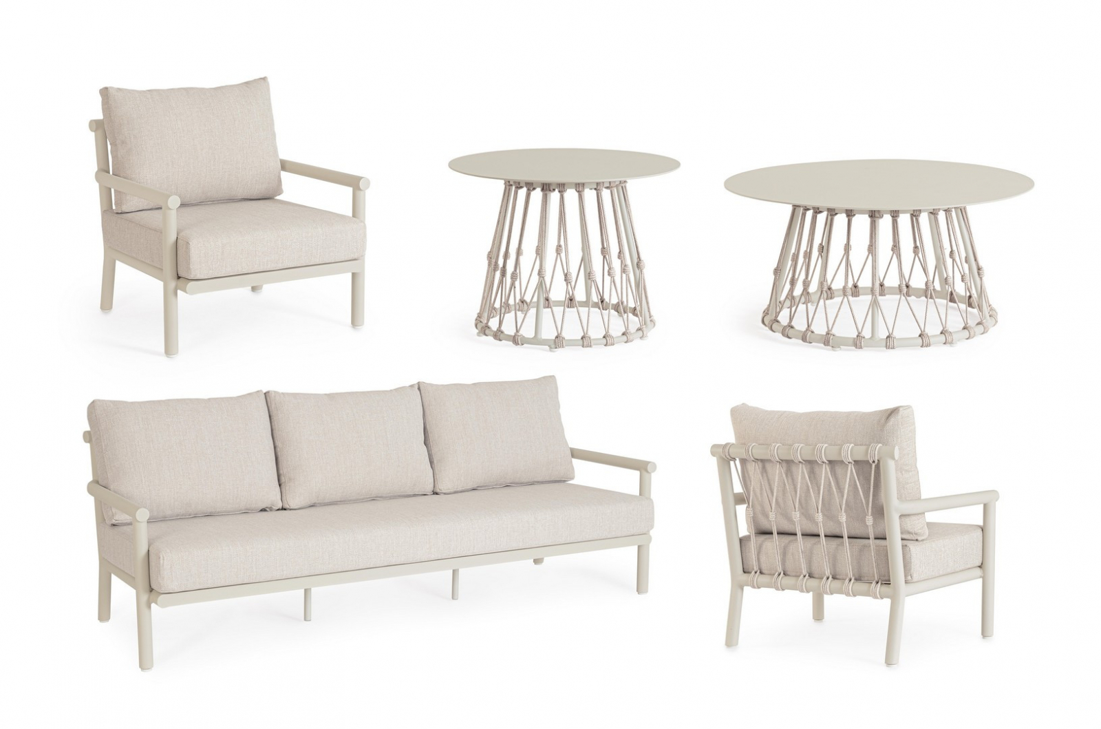 Лаунж комплект мебели Lanai - это стильное и практичное решение для обустройства комфортной зоны отдыха на террасе, в саду или на патио. Его дизайн в мягких песочных оттенках гармонично соединяет современные силуэты и природные текстуры, органично дополняя любое пространство.