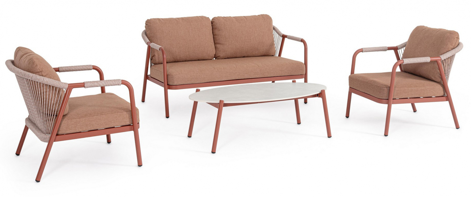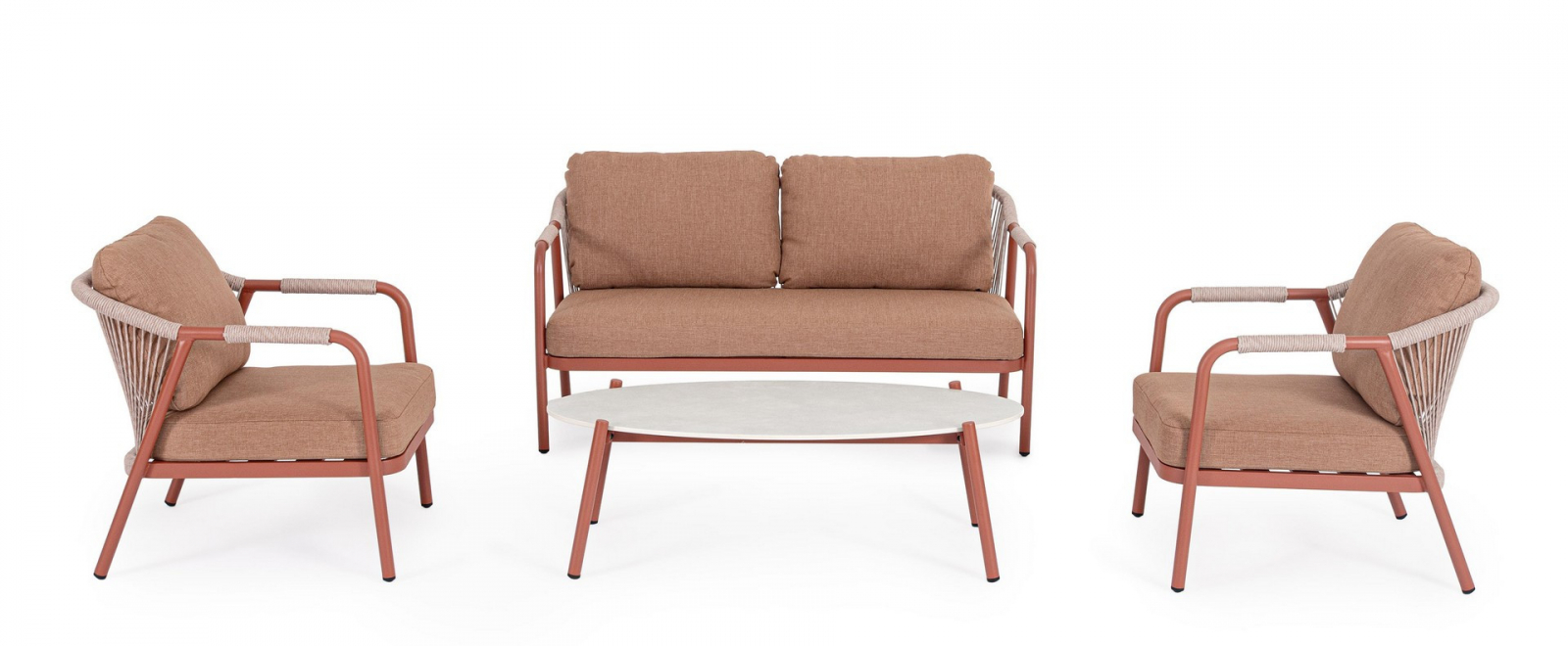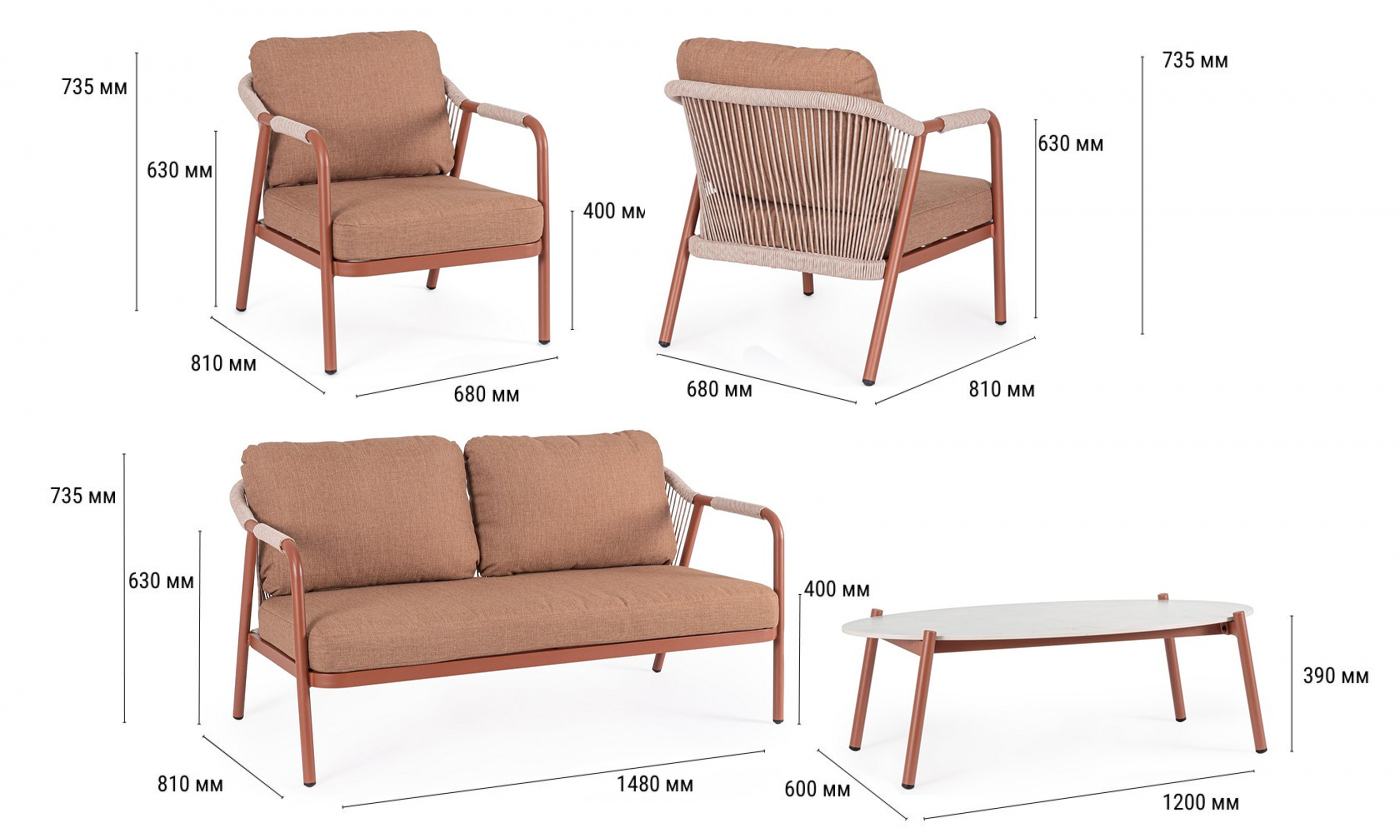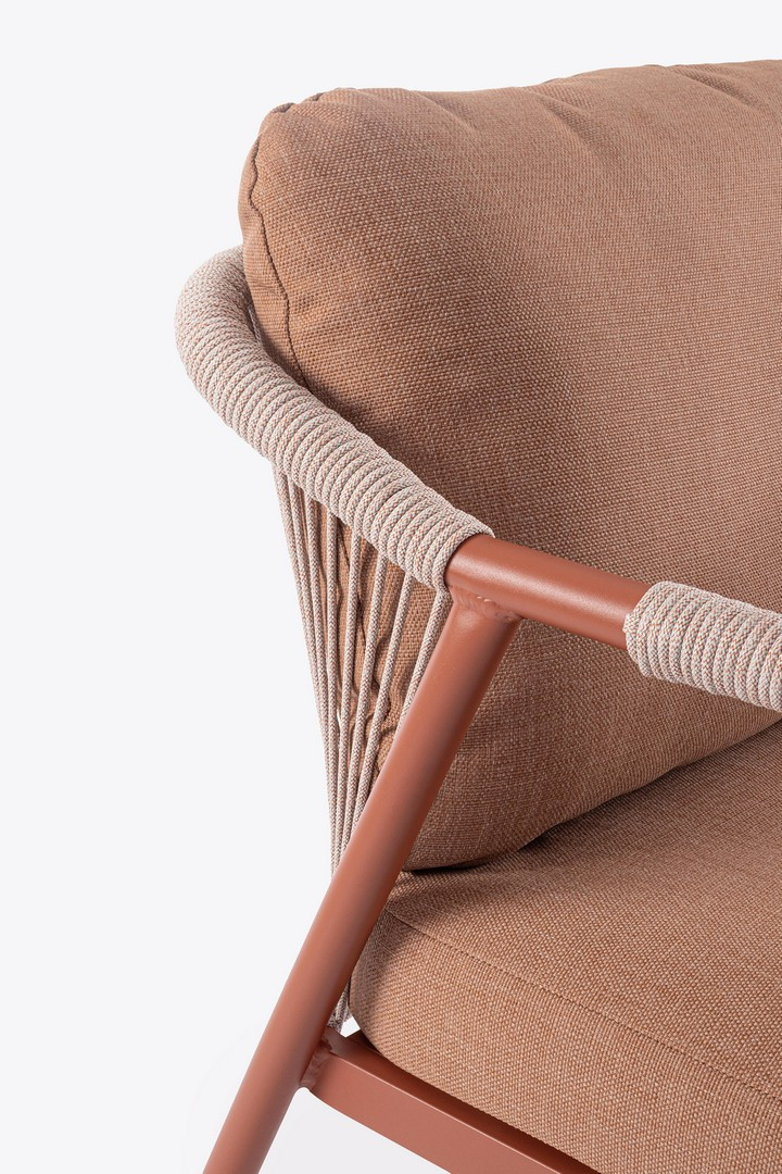 Miravet - комплект лаунж мебели из высококачественных материалов. Изысканная конструкция из алюминия с высокопрочным полиэстерным порошковым покрытием гарантирует исключительную прочность и устойчивость к непогоде. Плетеные элементы из роупа, придают комплекту неповторимый шарм и легкость. А благодаря лаконичному и элегантному дизайну он с легкостью вписывается в разнообразные стили площадок, придавая им современный, но в то же время теплый характер.
