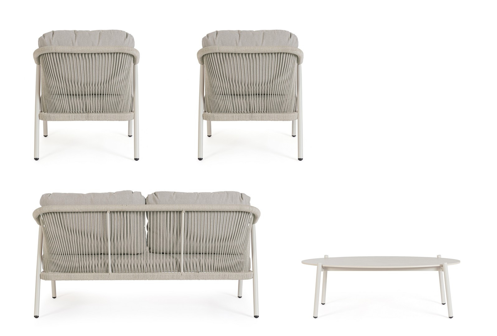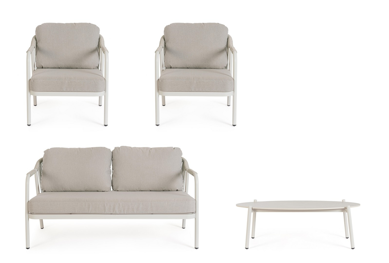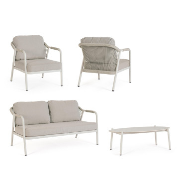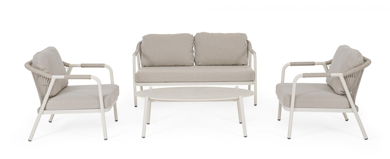 Miravet – комплект лаунж мебели из высококачественных материалов. Изысканная конструкция из алюминия с высокопрочным полиэстерным порошковым покрытием гарантирует исключительную прочность и устойчивость к непогоде. Плетеные элементы из роупа, придают комплекту неповторимый шарм и легкость. А благодаря лаконичному и элегантному дизайну он с легкостью вписывается в разнообразные стили площадок, придавая им современный, но в то же время теплый характер.