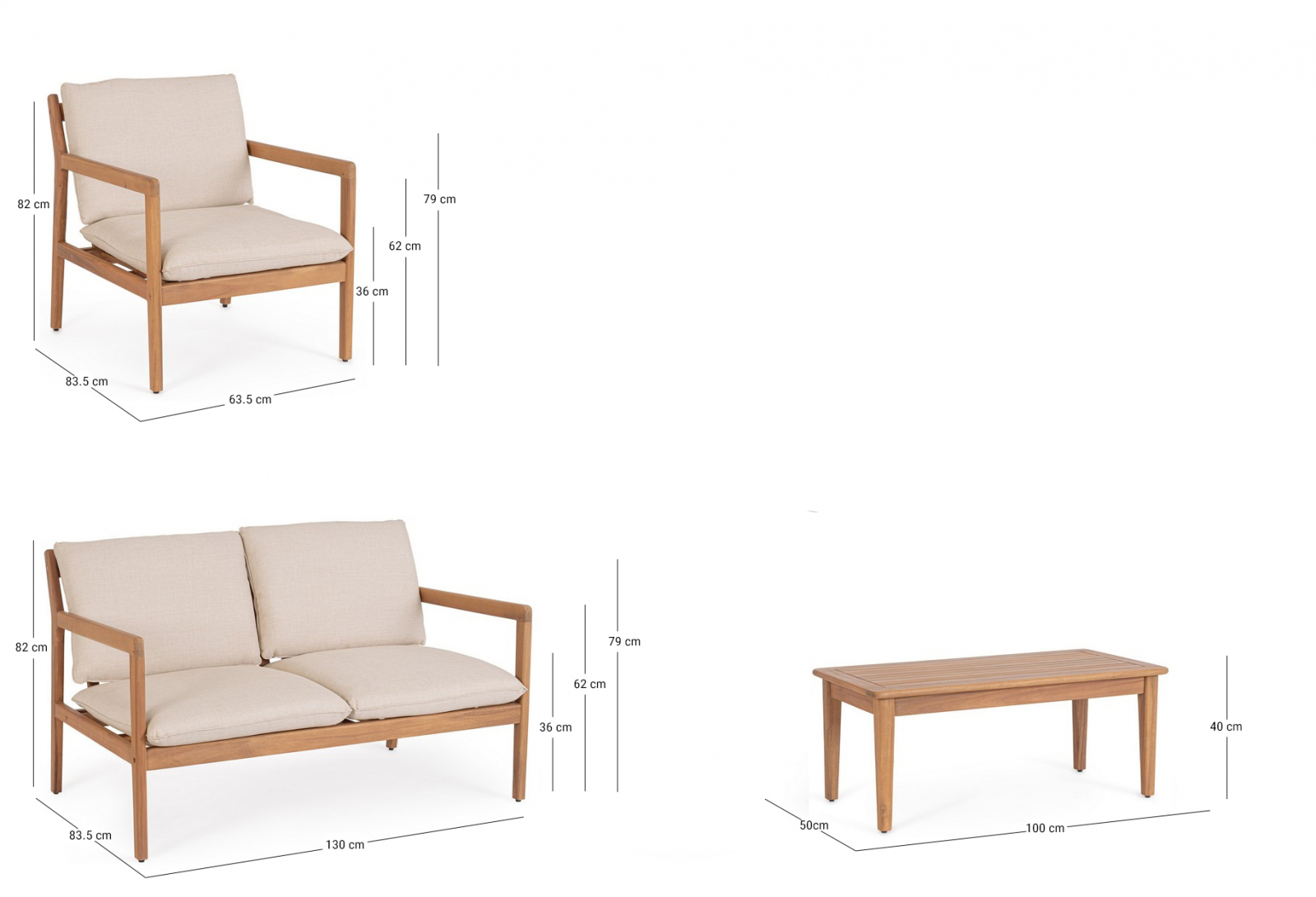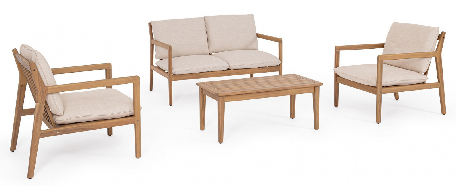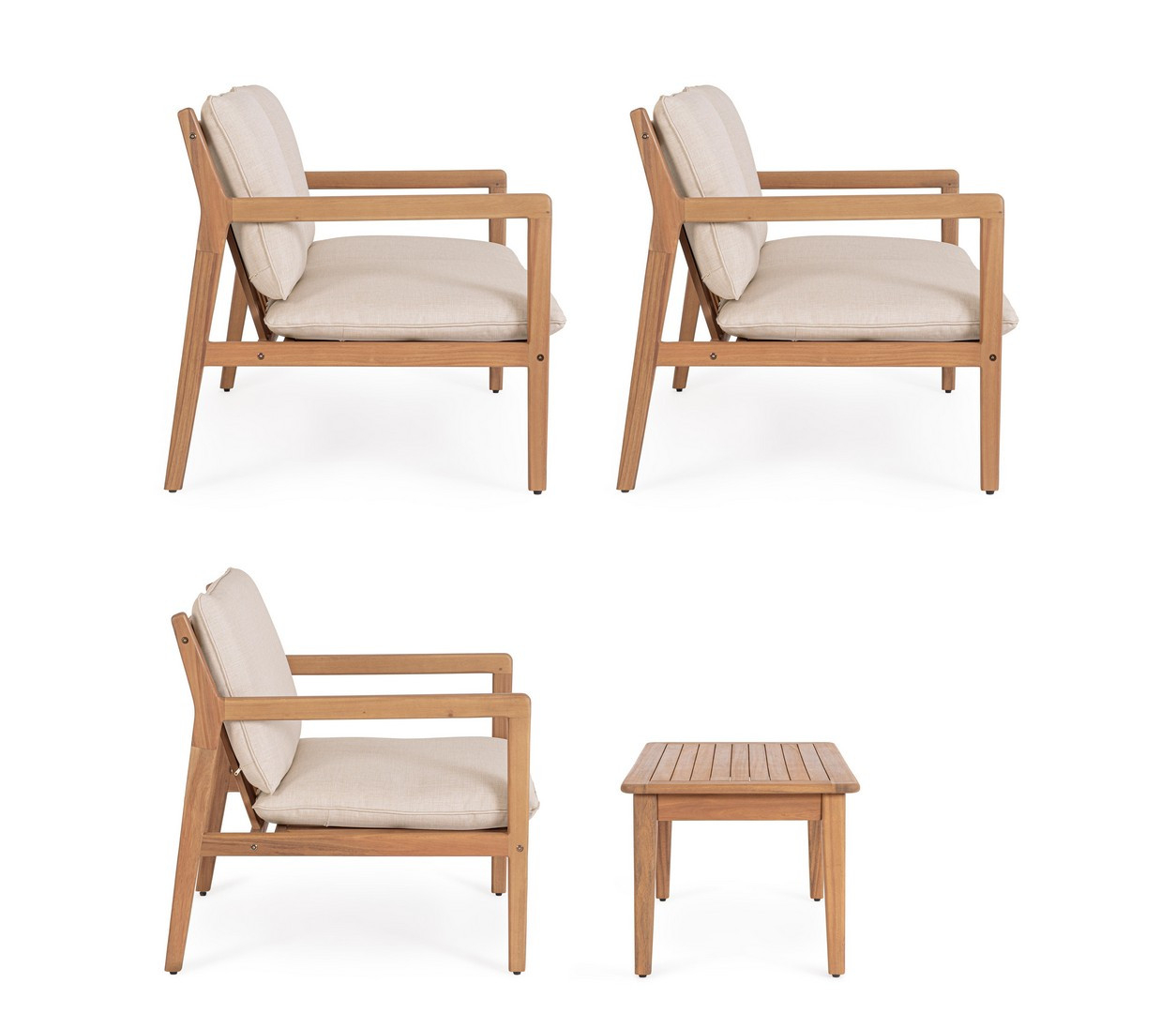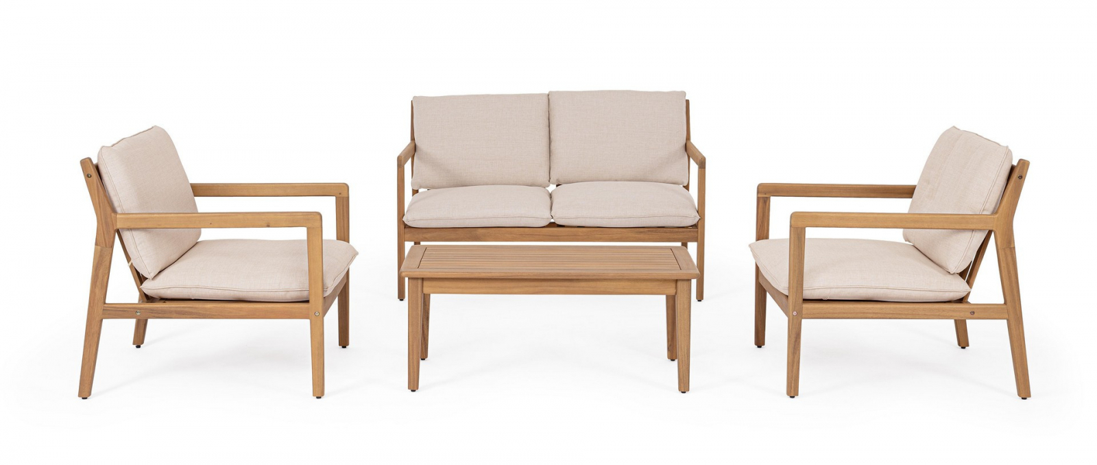Комплект Danubio предлагает практичное и визуально гармоничное решение для обустройства зон отдыха на террасах, в садах и на патио. Изделия сочетают натуральную древесину акации с современными материалами, обеспечивая долговечность и гармоничный внешний вид.