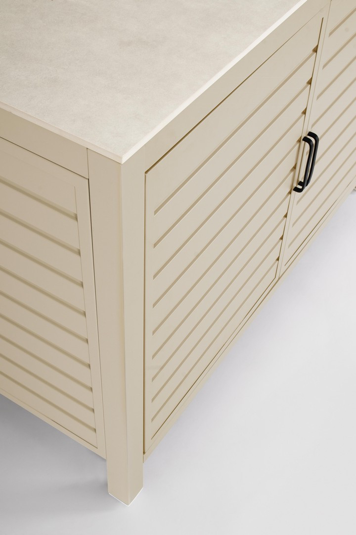 Станция для официантов Aria с внутренней полкой, функциональностью шкафа и конструкцией из алюминия разработана с учетом эргономики, скорости обслуживания и удобства.