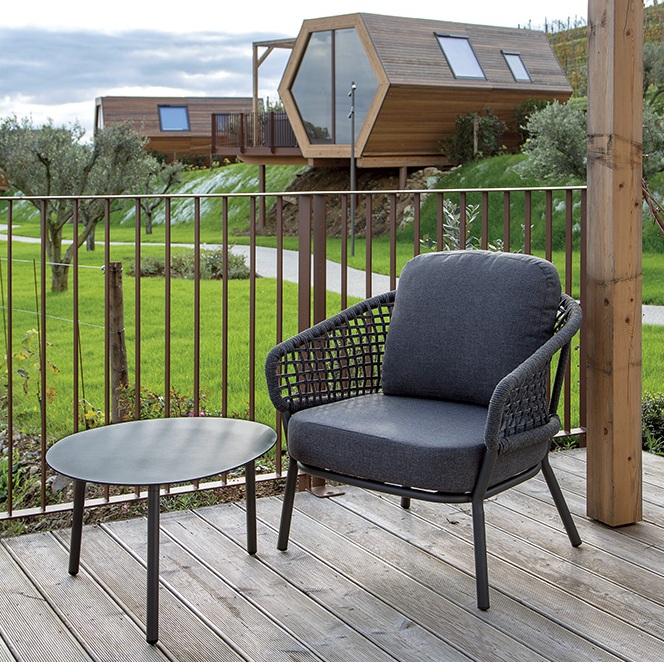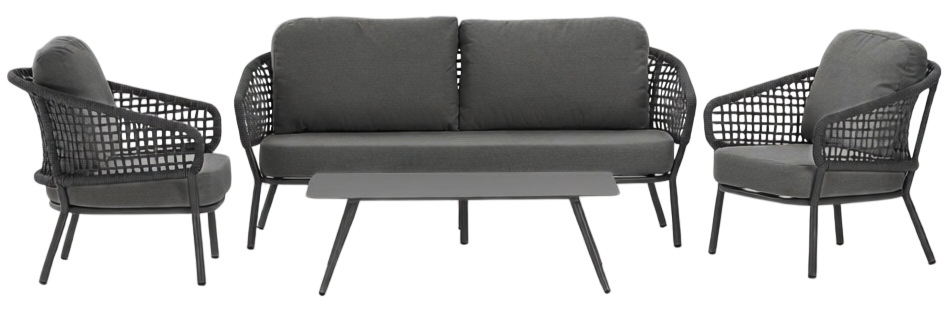 Комплект Atol состоит из двухместного дивана, двух кресел и журнального столика. Алюминиевый каркас с порошковым покрытием делает мебель комплекта устойчивой и надежной. Подлокотники и спинки кресел и двухместного дивана оплетены полиолефиновым канатом, благодаря чему комплект выглядит стильно в любом помещении или на открытой площадке. Подушки с устойчивыми к пятнам и ультрафиолетовому излучению съемными олефиновыми чехлами и наполнителем из быстросохнущей пены Quick Dry Foam обеспечивают комфортный отдых.