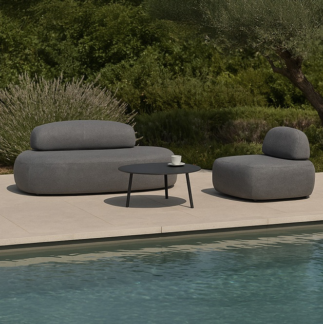 Садовый комплект мебели Rock сочетает в себе исключительный дизайн, непревзойденный комфорт и высокое качество изготовления. Этот стильный комплект состоит из кресла, дивана и журнального столика с алюминиевой столешницей. Прочный алюминиевый каркас с резиновым покрытием обеспечивает устойчивость к погодным условиям, а олефиновые подушки с водонепроницаемым покрытием обеспечивают максимальный комфорт и простоту ухода.