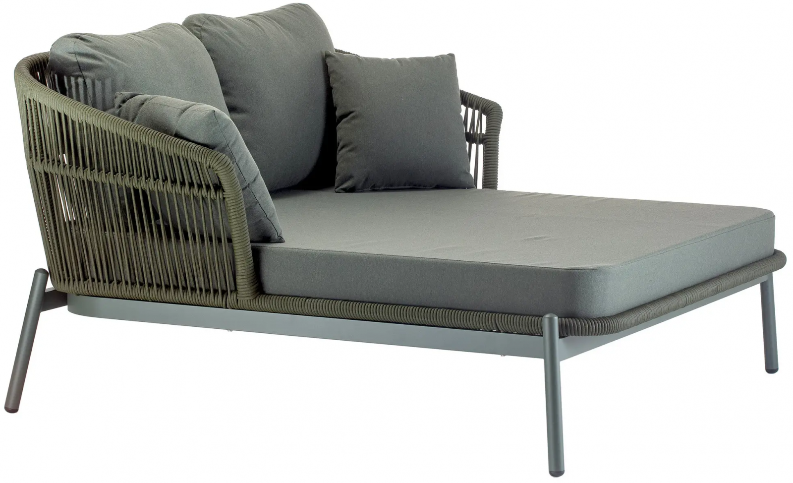 Лаунж-диван Tropea сочетает в себе современный дизайн, максимальный комфорт и высокое качество изготовления. Прочный алюминиевый каркас обтянут текстильным канатом, что обеспечивает элегантный внешний вид и устойчивость к погодным условиям. Просторная зона отдыха оснащена водоотталкивающими подушками из олефина и обеспечивает роскошный отдых - идеально для сада, патио или бассейна.
