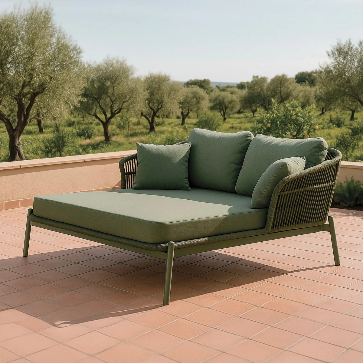 Лаунж-диван Tropea - идеальный выбор для тех, кто ищет роскошный и удобный шезлонг для отдыха на открытом воздухе, подходящий для долгих часов отдыха под открытым небом.