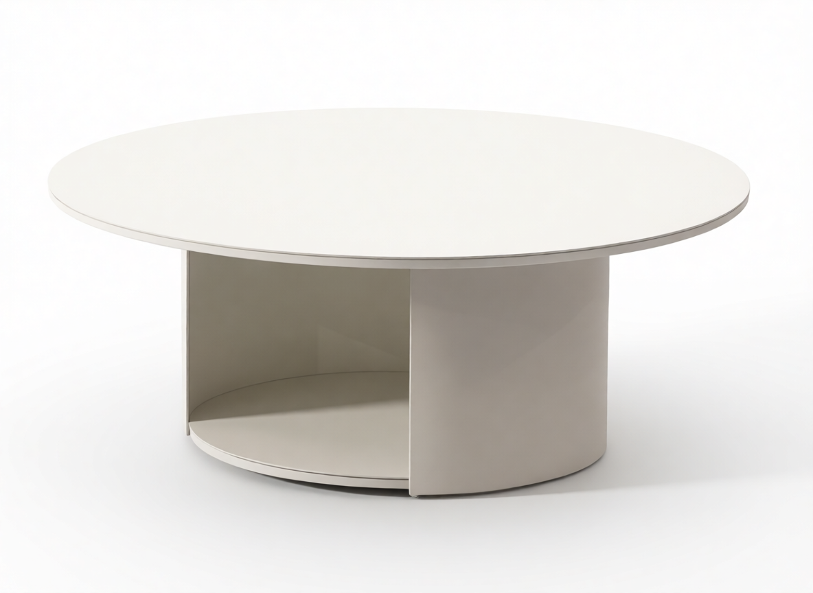 Кофейный столик из коллекции Cosy сочетает лёгкость алюминиевой конструкции с утончённой минималистичной формой: круглая столешница плавно переходит в цельный цилиндрический постамент с продуманным вырезом для открытого хранения, создавая ощущение невесомости и гармонии. Его нейтральный цвет и мягкие линии идеально дополняют уютные, округлые формы мебели коллекции, подчёркивая концепцию современного комфорта без излишеств.