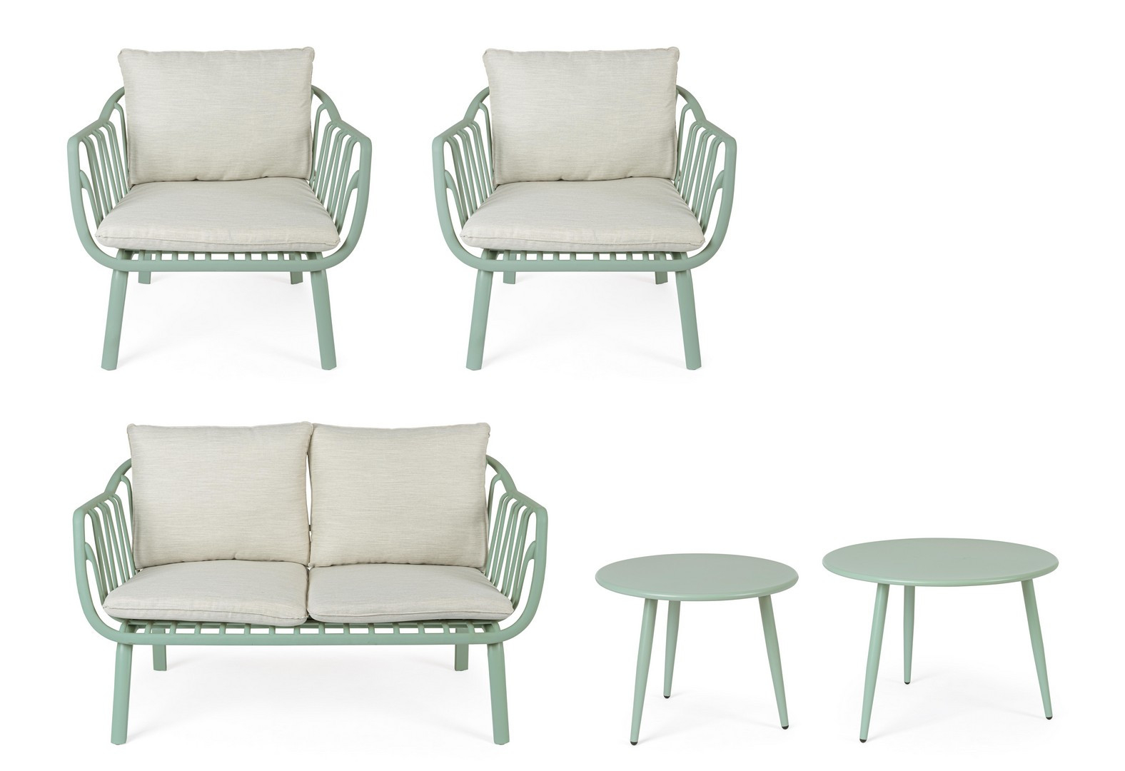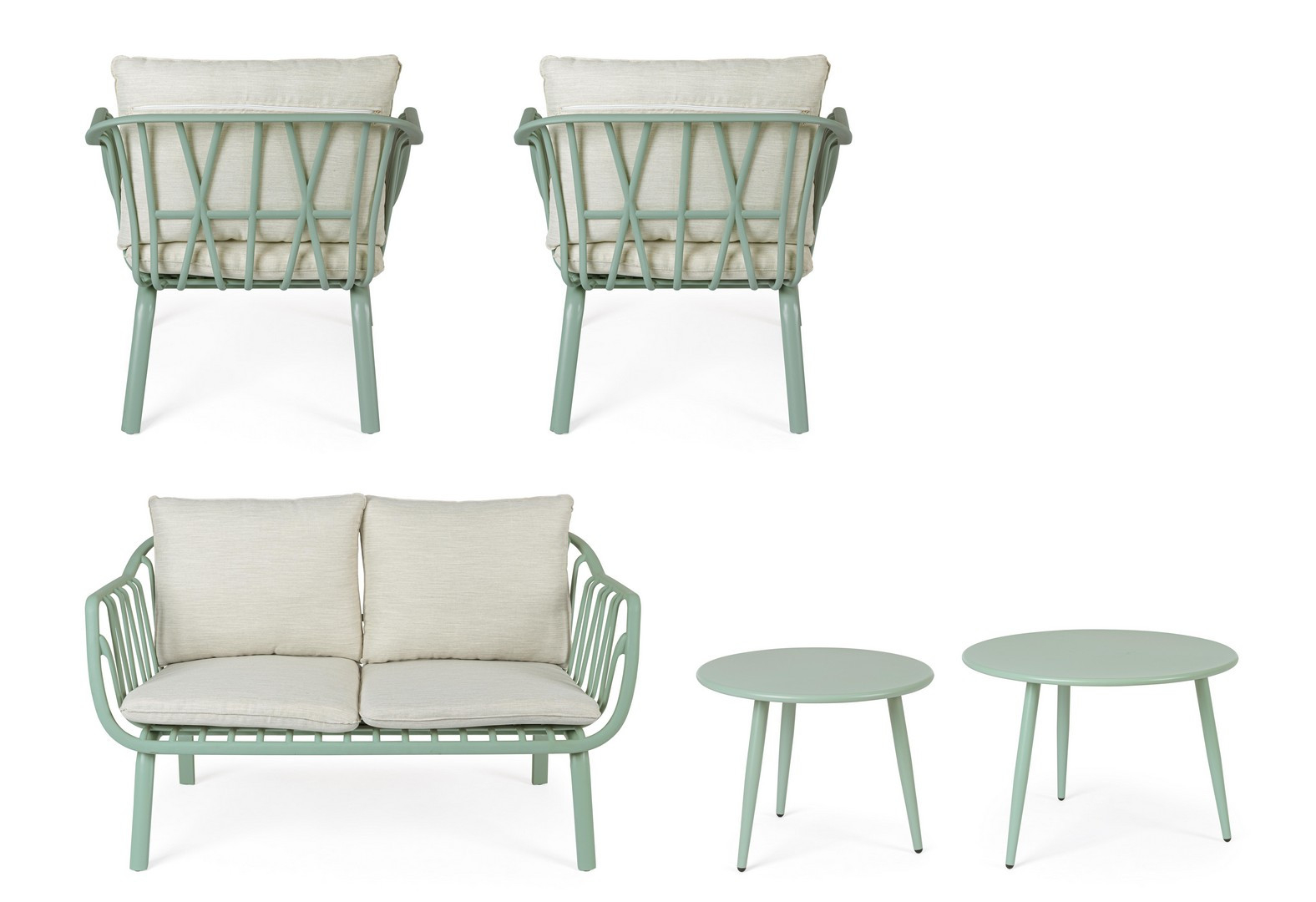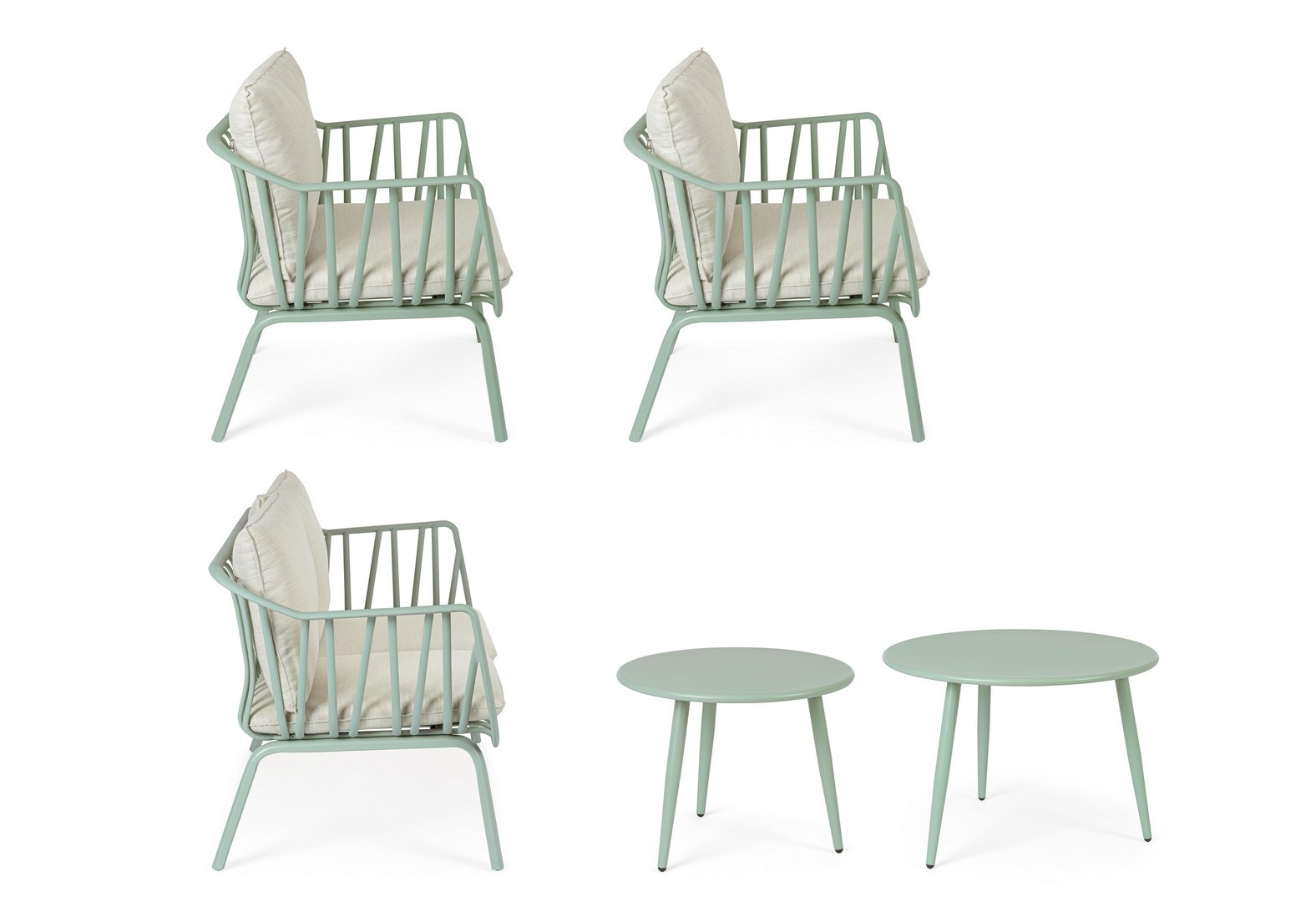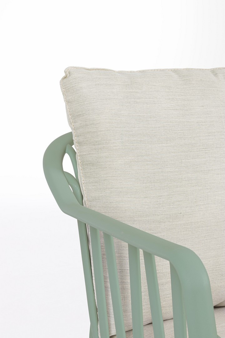 Идеальное решение для тех, кто ценит продуманный дизайн и долговечность даже на открытом воздухе. Комплект Nixie в нежном оттенке зеленого шалфея - это не просто мебель, а стильная зона отдыха, которая превратит вашу террасу, патио или сад в уютное продолжение интерьера.