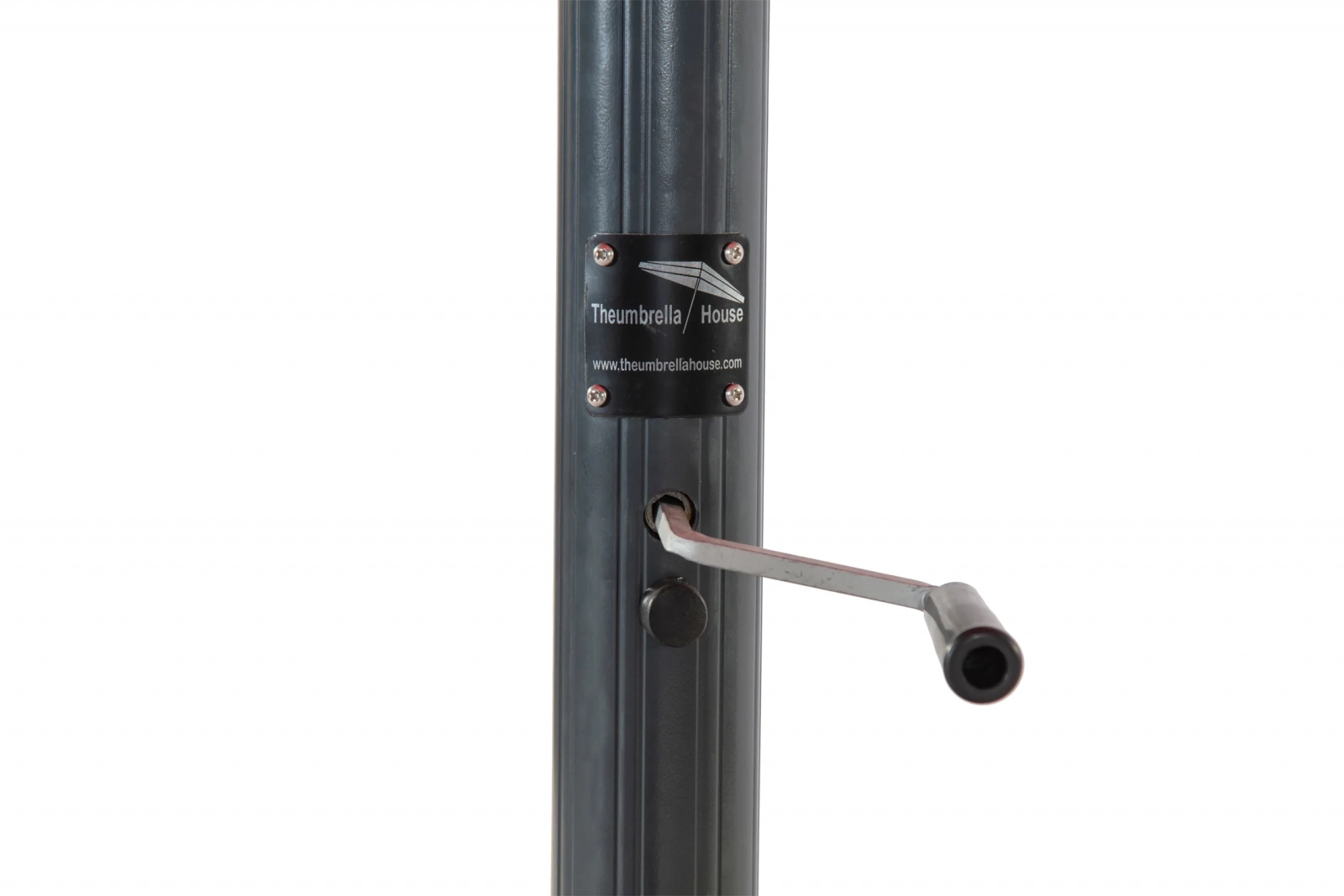 Зонт открывается и закрывается одной рукой и рассчитан на долгие годы службы. При закрытии купол заметно приподнимается. Благодаря такому устройству - телескопической системе - при открывании и закрывании купола не нужно выносить из-под него мебель. Это самое практичное решение для затенения уличных кафе и летних веранд ресторанов. Система коленчатого вала, спрятанная в опоре зонта, была усилена за долгие годы эксплуатации.